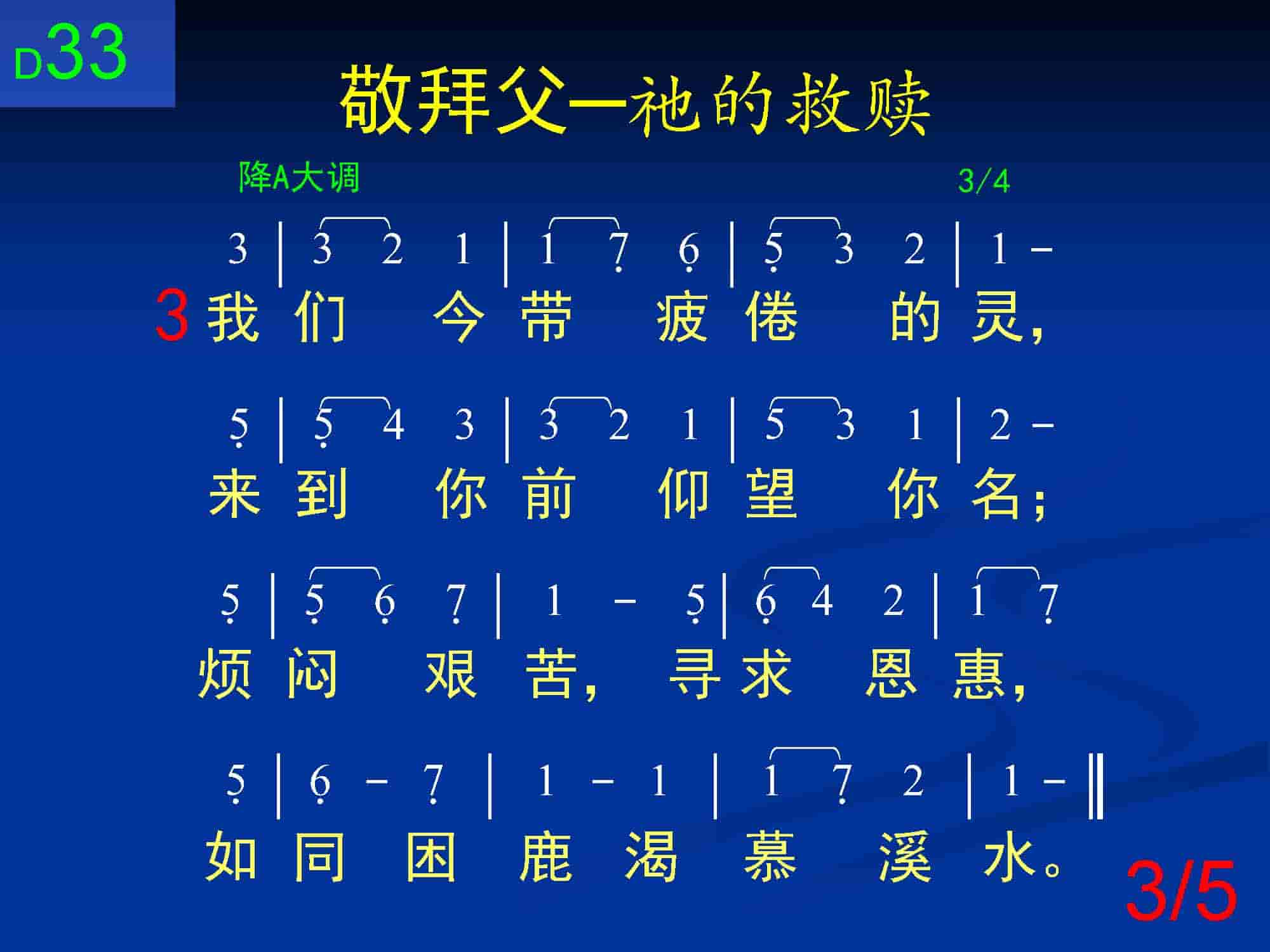 我们今带疲倦的灵,来到你前仰望你名;烦闷艰苦,寻求恩惠,如同困鹿渴慕溪水。
