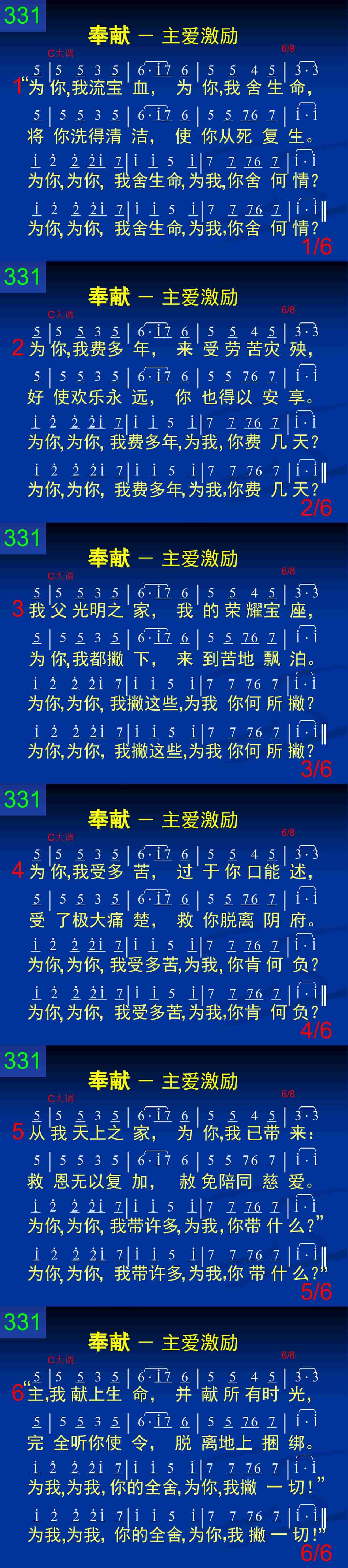 “为你,我流宝血,为你,我舍生命,将你洗得清洁,使你从死复生。为你,为你,舍生命,为我,你舍何情?