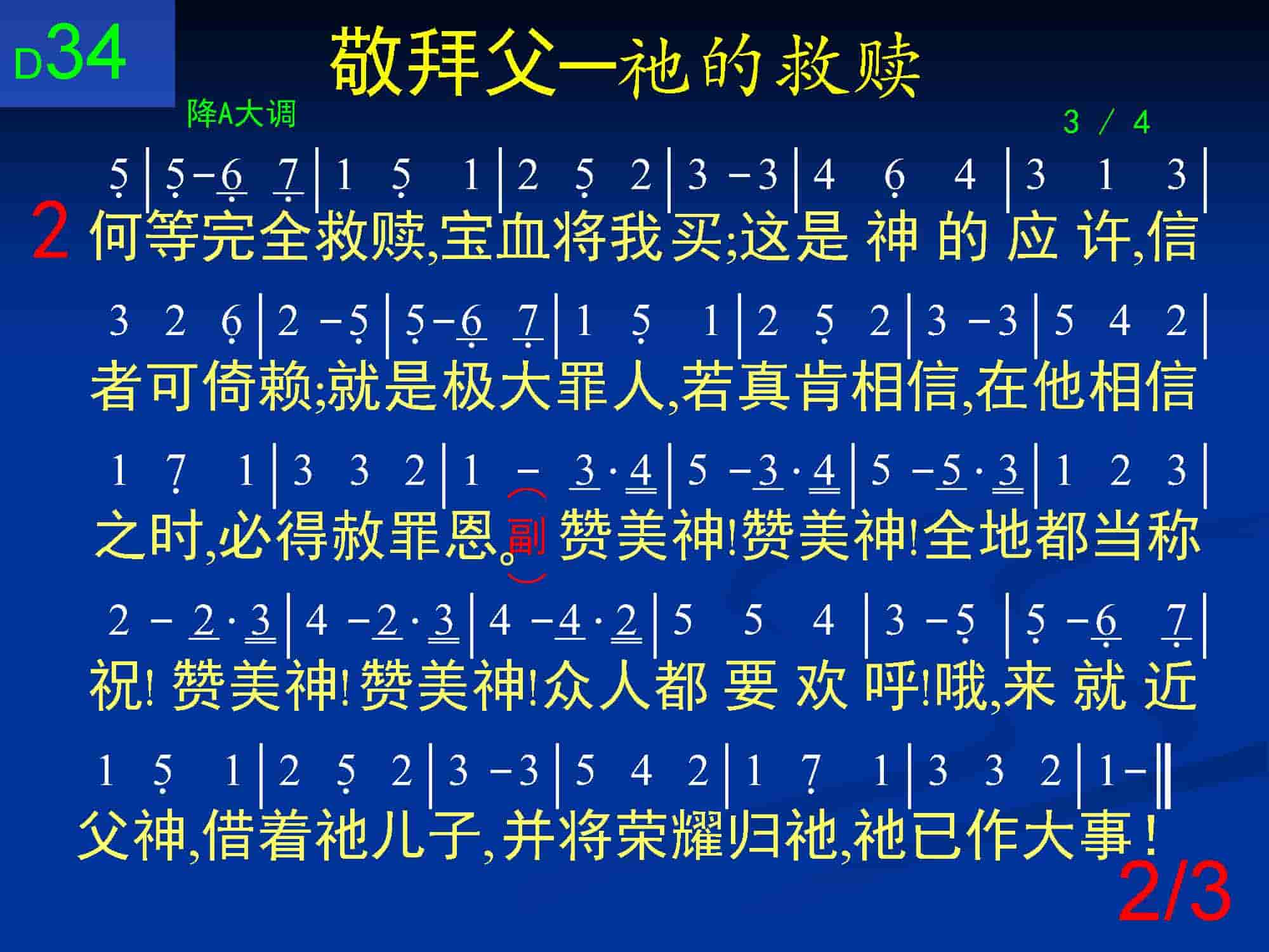 何等完全救赎,宝血将我买;这是神的应许,信者可倚赖;就是极大罪人,若真肯相信,在他相信之时,必得赦罪恩。
