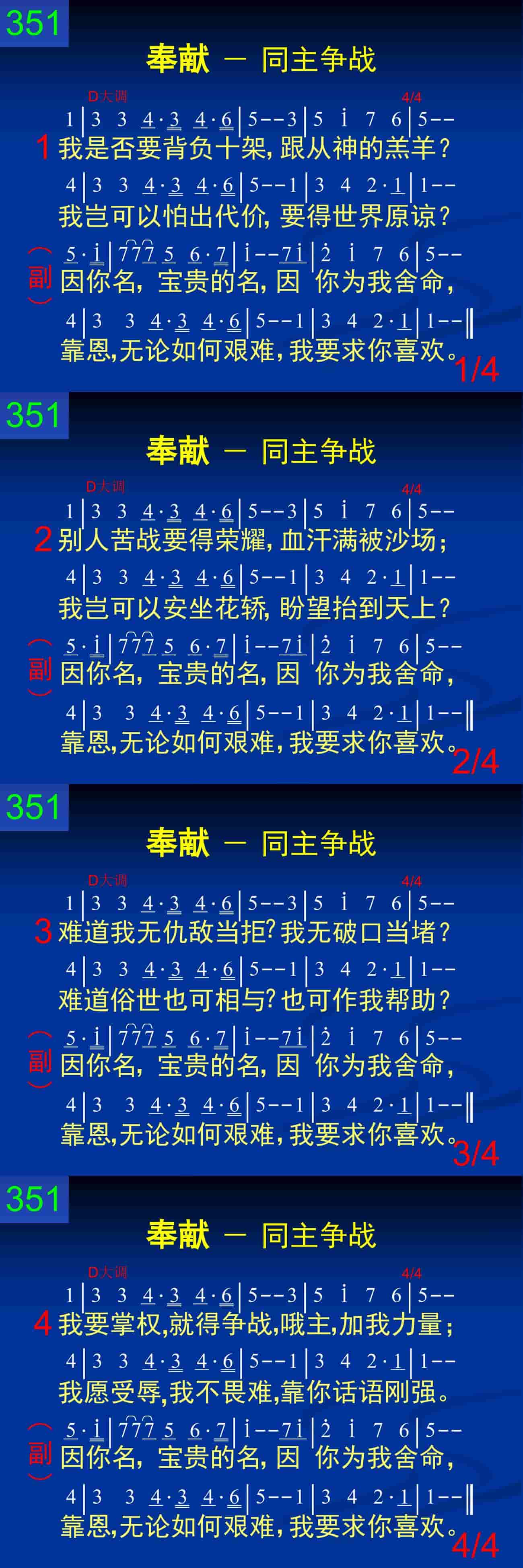 我要掌权,就得争战,哦主,加我力量;我愿受辱,我不畏难,靠你话语刚强。