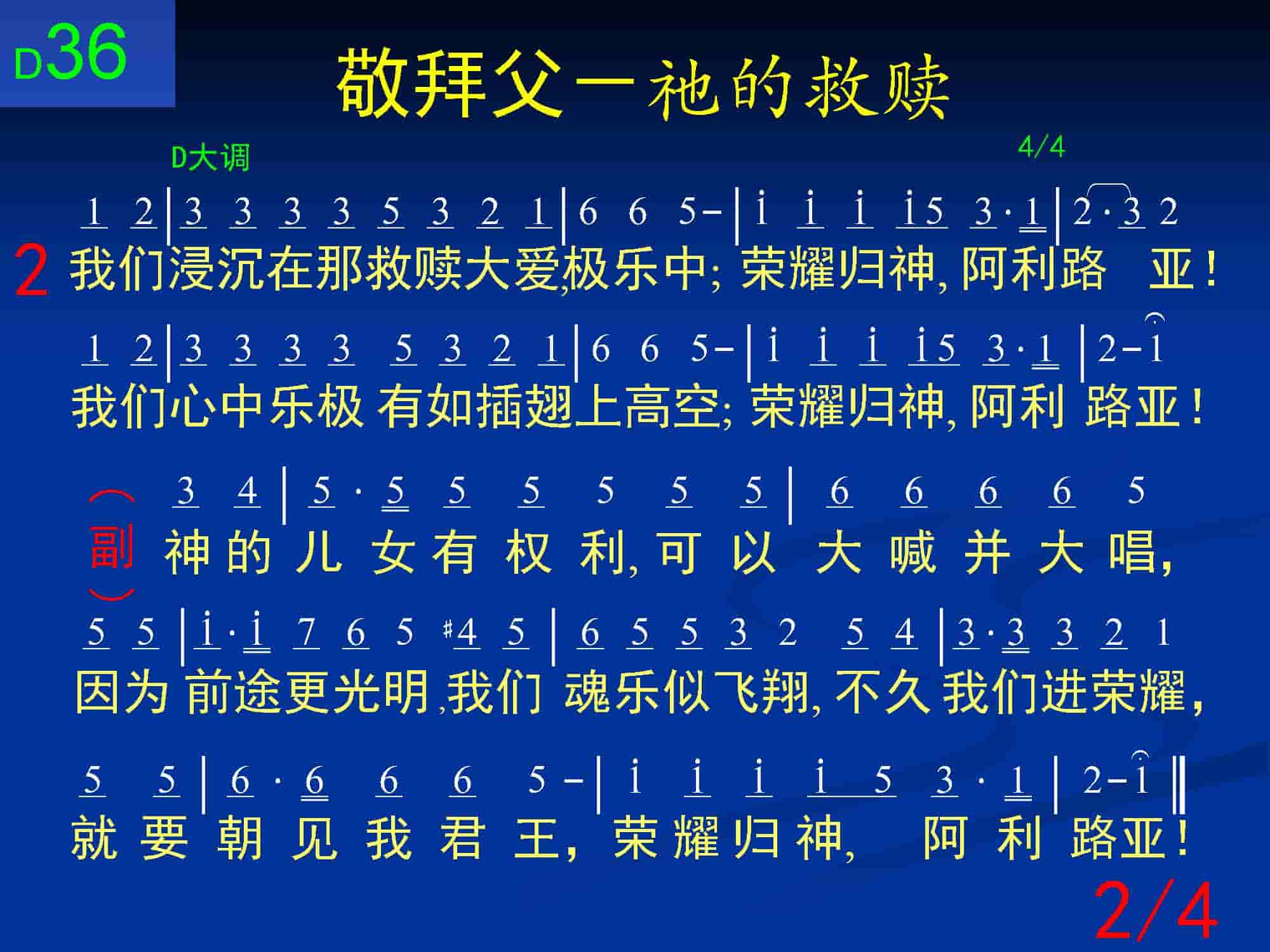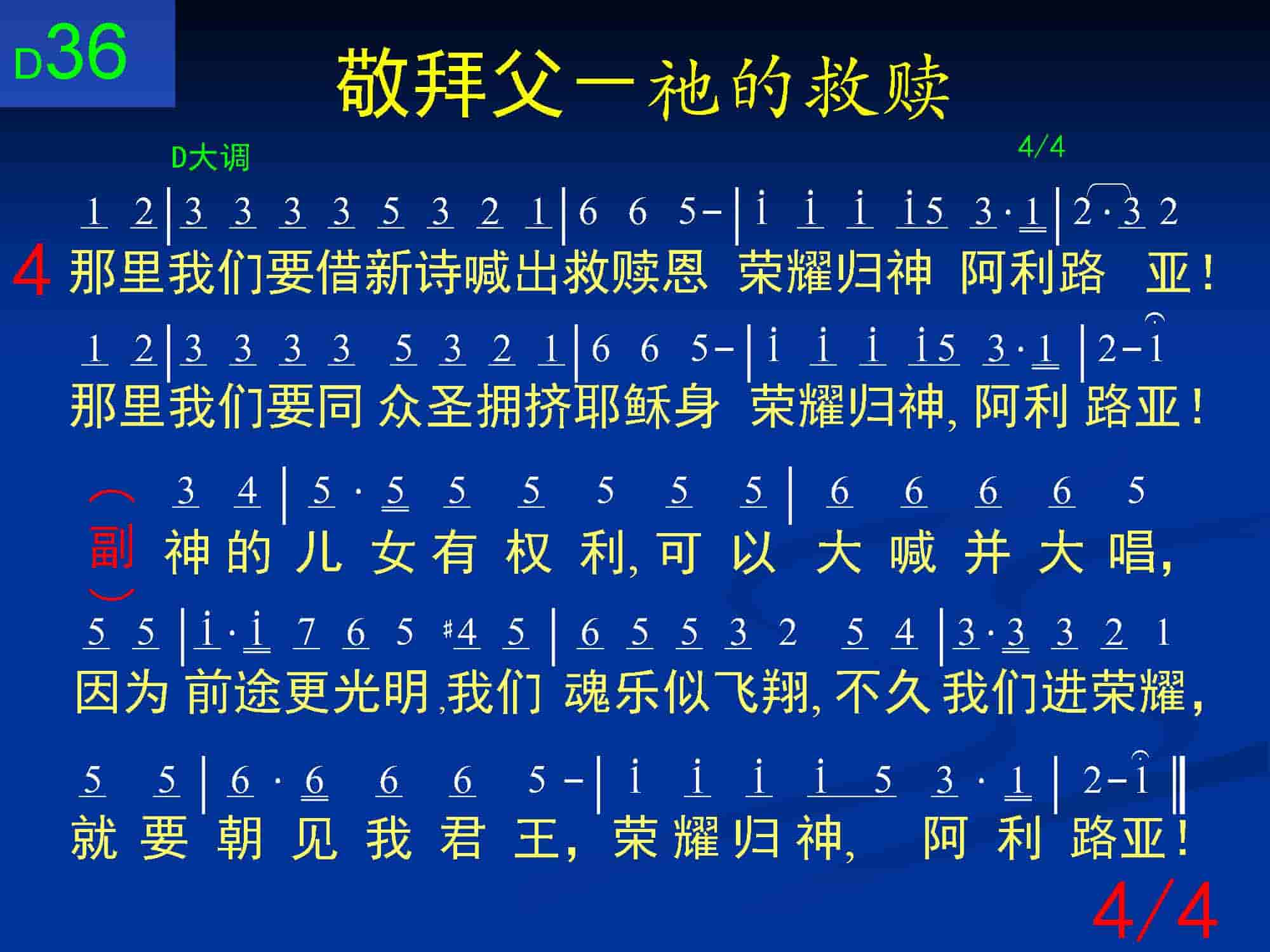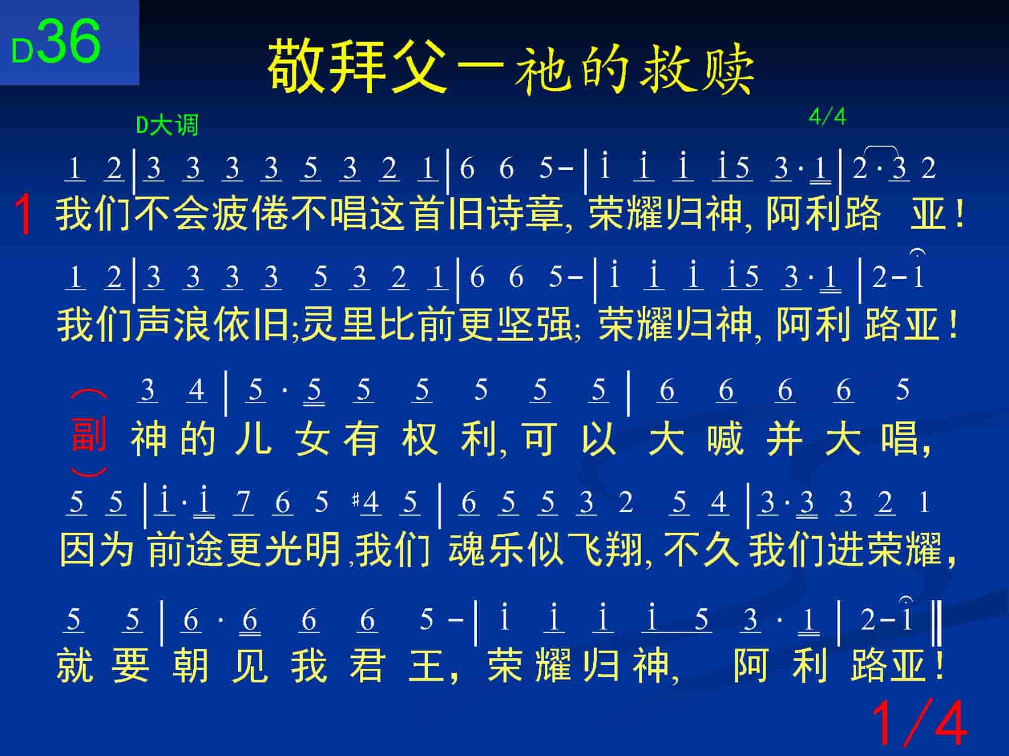 我们不会疲倦不唱这首旧诗章,荣耀归神,阿利路亚!我们声浪依旧,灵里比前更坚强;荣耀归神,阿利路亚!