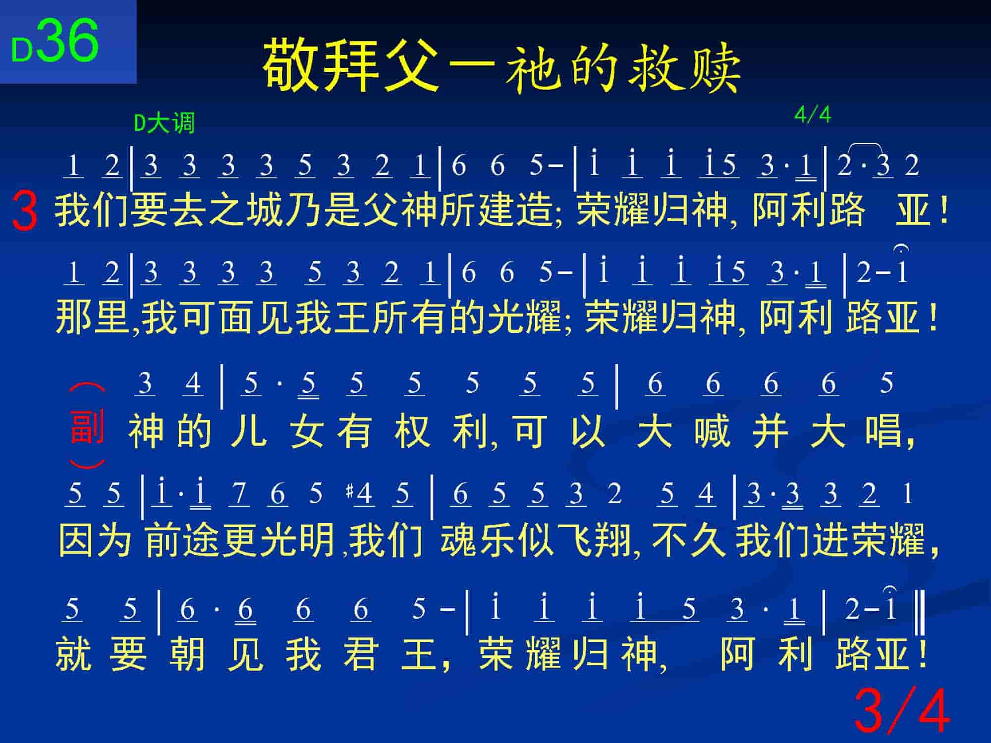 我们要去之城乃是父神所建造;荣耀归神,阿利路亚!那里,我可面见我王所有的光耀;荣耀归神,阿利路亚!
