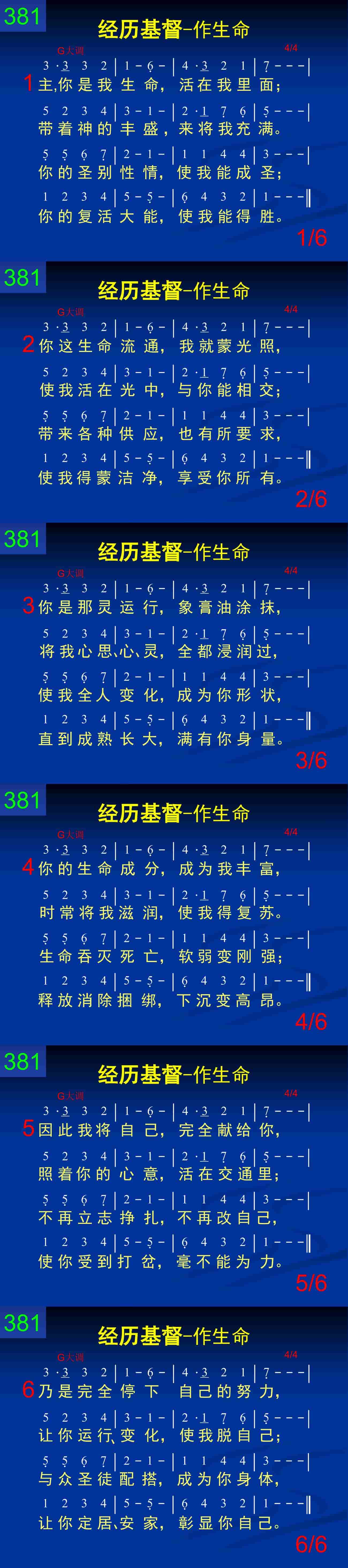 主,你是我生命,活在我里面;带着神的丰盛,来将我充满。你的圣别性情,使我能成圣;你的复活大能,使我能得胜。