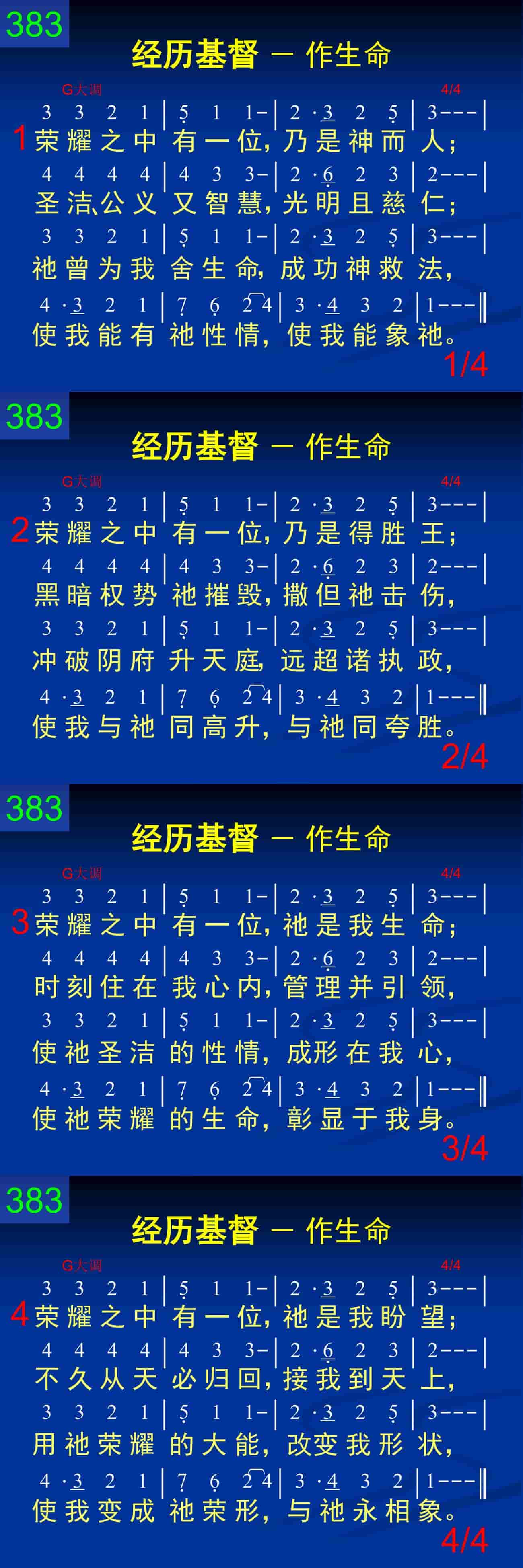 荣耀之中有一位,祂是我生命;时刻住在我心内,管理并引领,使祂圣洁的性情,成形在我心,使祂荣耀的生命,彰显于我身。