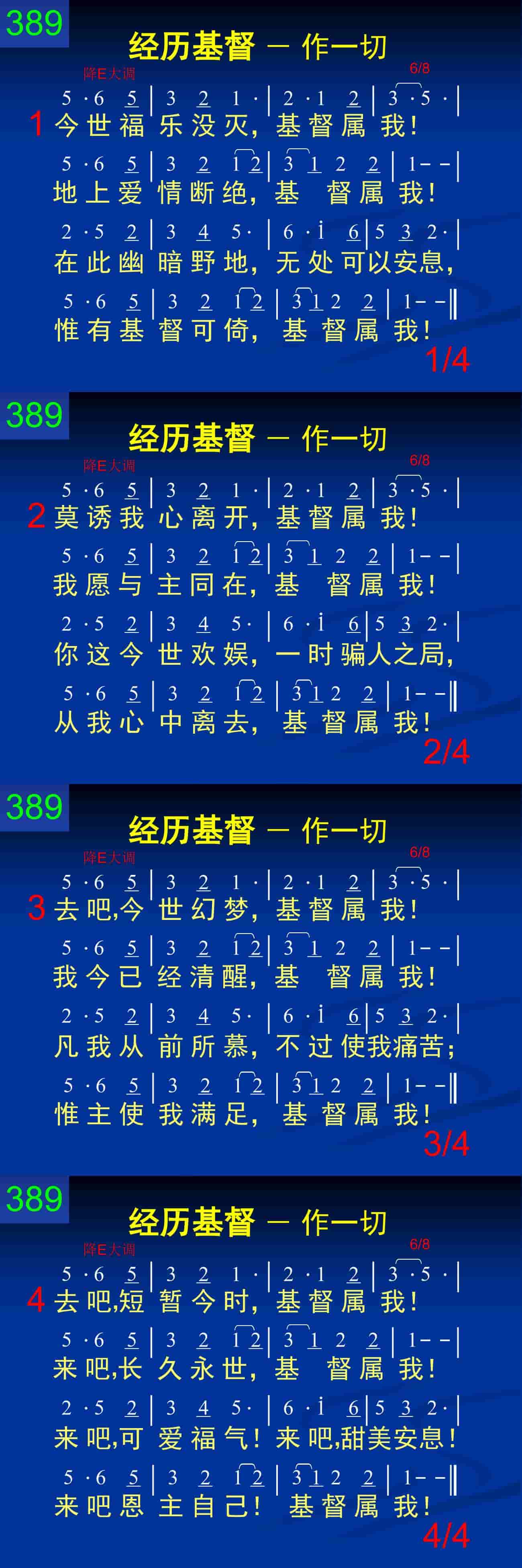 去罢,今世幻梦,基督属我!我今已经清醒,基督属我!凡我从前所慕,不过使我痛苦;唯主使我满足,基督属我!