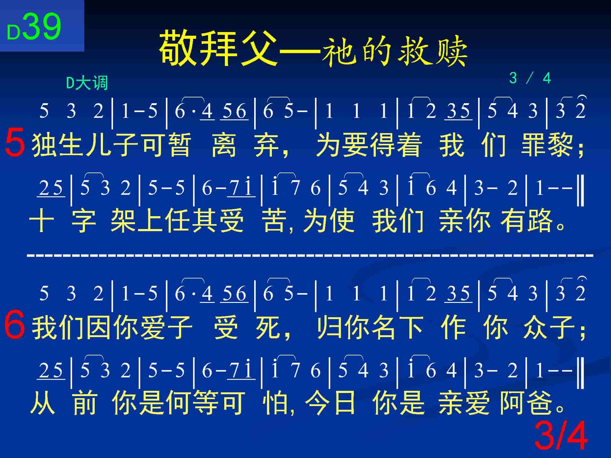 独生儿子可暂离弃,为要得着我们罪黎;十字架上任其受苦,为使我们亲你有路。