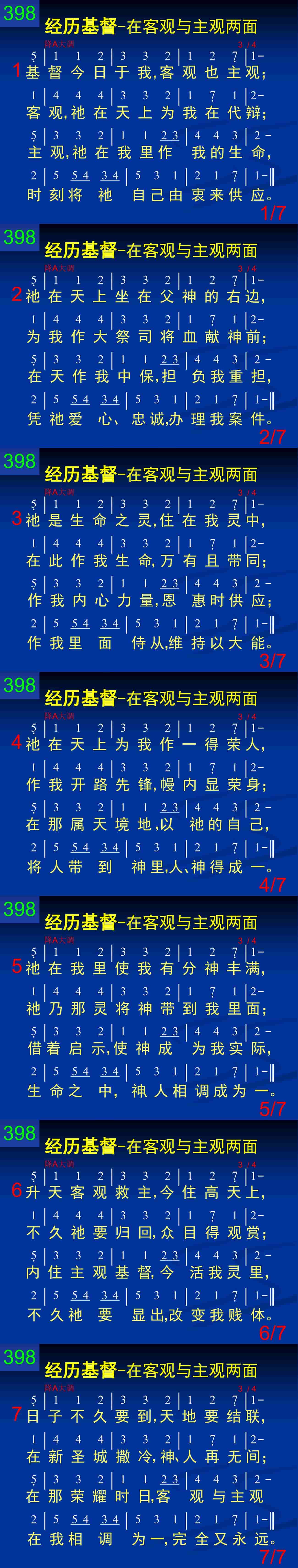 升天客观救主,今住高天上,不久祂要归回,众目得观赏;内住主观基督,今活我灵里,不久祂要显出,改变我贱体。