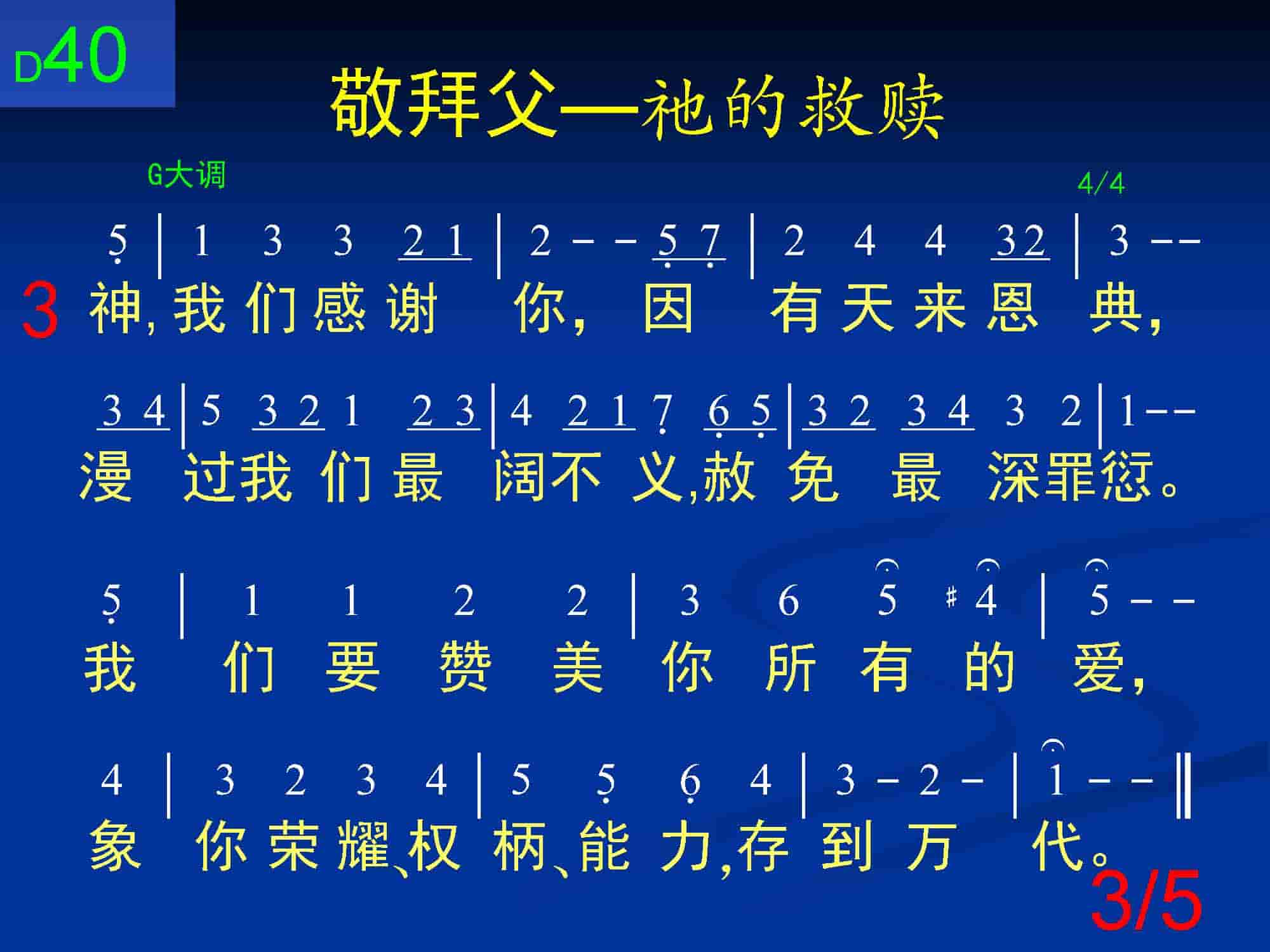 神,我们感谢你,因有天来恩典,漫过我们最阔不义,赦免最深罪愆。我们要赞美你所有的爱,像你荣耀、权柄、能力,存到万代。