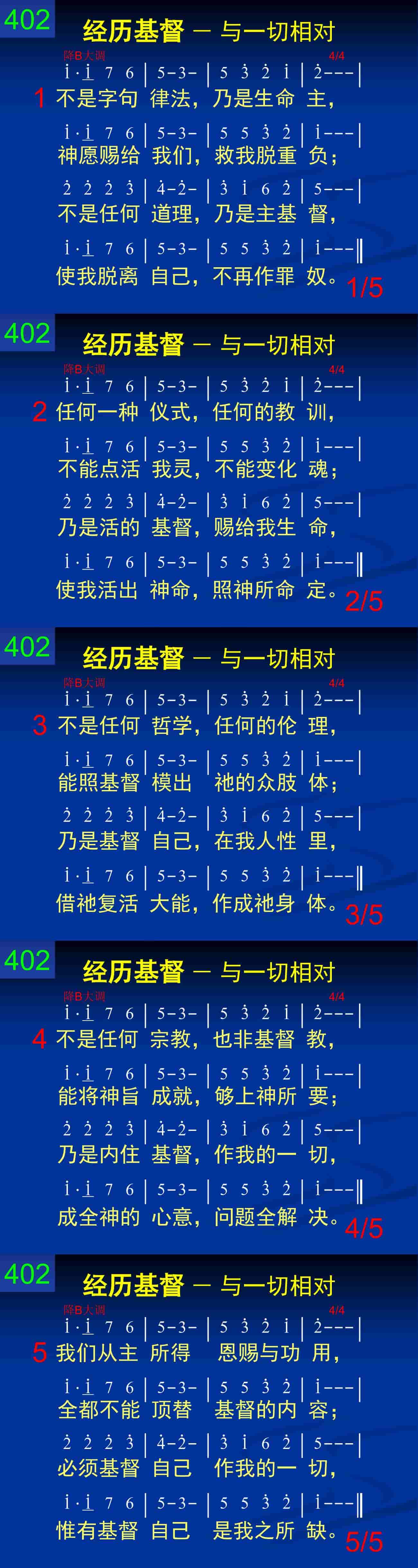 不是字句律法,乃是生命主,神愿赐给我们,救我脱重负;不是任何道理,乃是主基督,使我脱离自己,不再作罪奴。