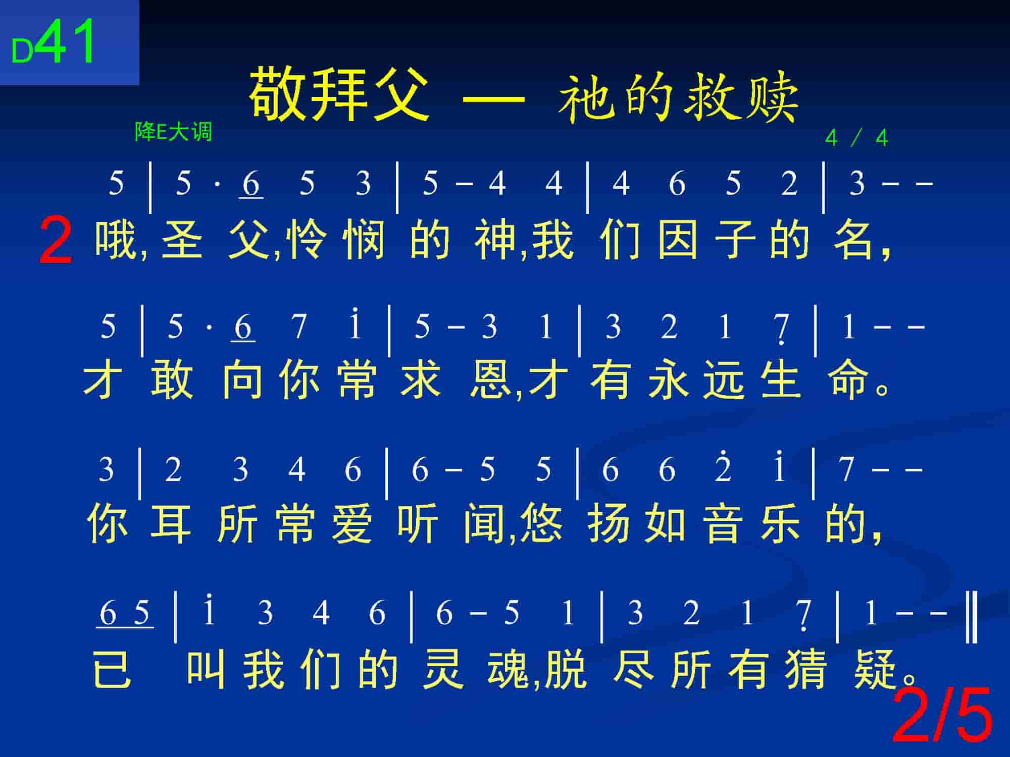 哦,圣父,怜悯的神,我们因子的名,才敢向你常求恩,才有永远生命。你耳所常爱听闻——,悠扬如音乐的,已叫我们的灵魂,脱尽所有猜疑。