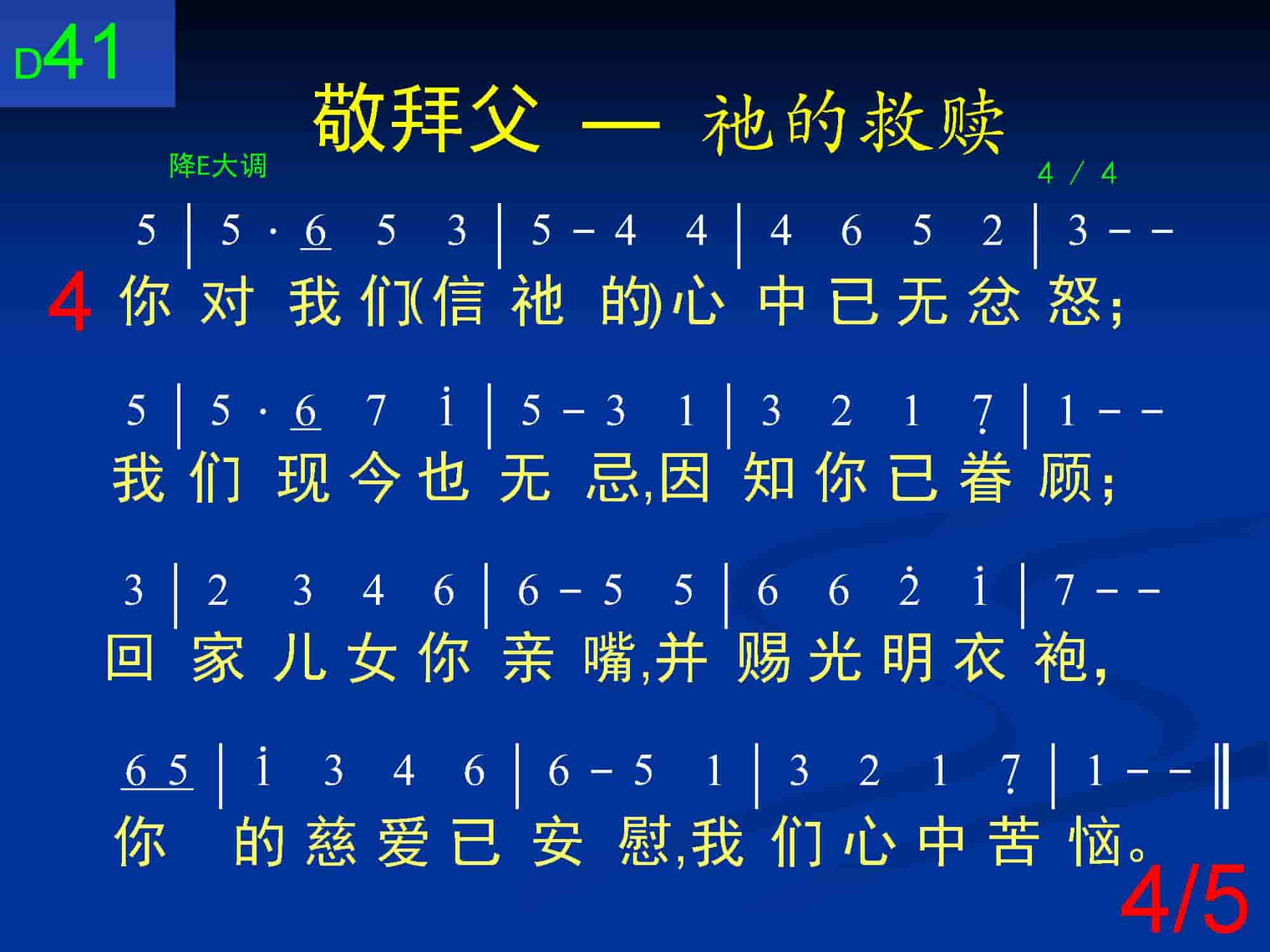 你对我们(信祂的心中已无忿怒;我们现今也无忌,因知你已眷顾;回家儿女你亲嘴,并赐光明衣袍,你的慈爱已安慰,我们心中苦恼。)