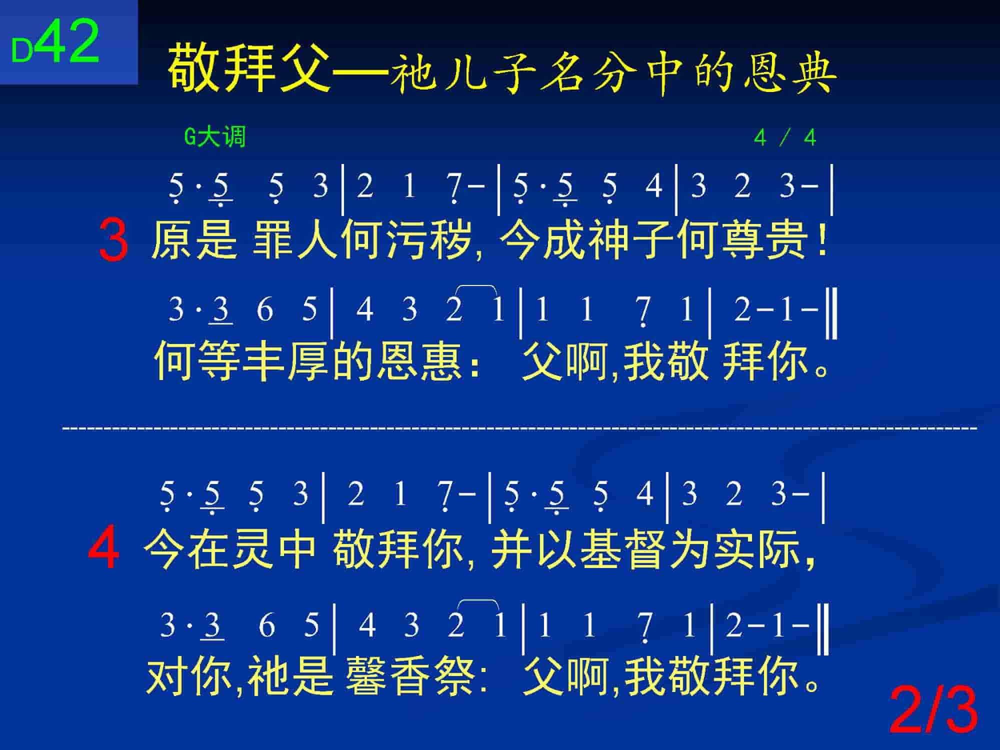 原是罪人何污秽,今成神子何尊贵!何等丰厚的恩惠:父啊,我敬拜你。