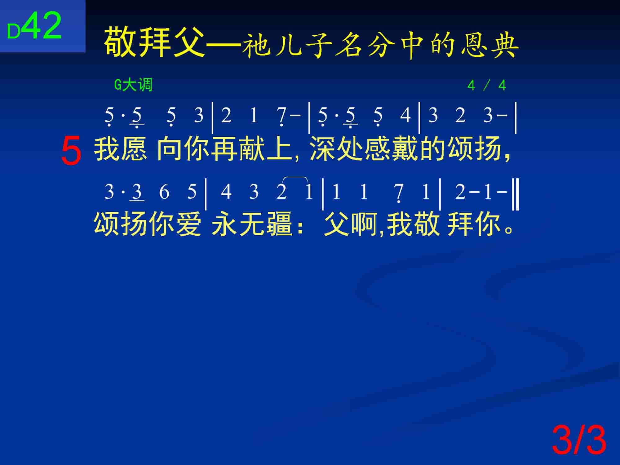 我愿向你再献上,深处感戴的颂扬,颂扬你爱永无疆:父啊,我敬拜你。