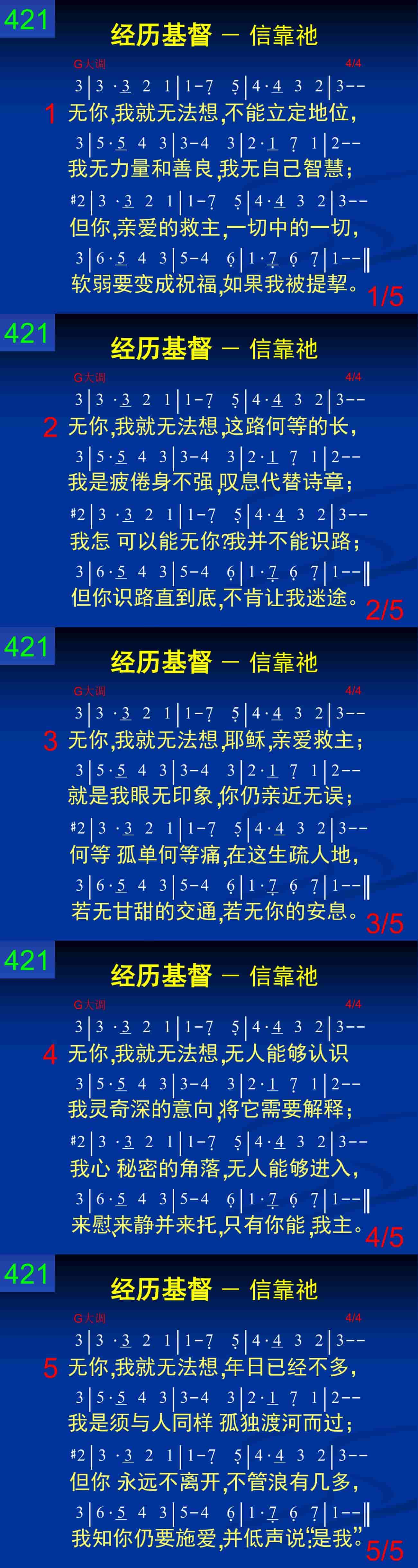 无你,我就无法想,不能立定地位,我无力量和善良,我无自己智慧;但你,亲爱的救主,一切中的一切,软弱要变成祝福,如果我被提挈。