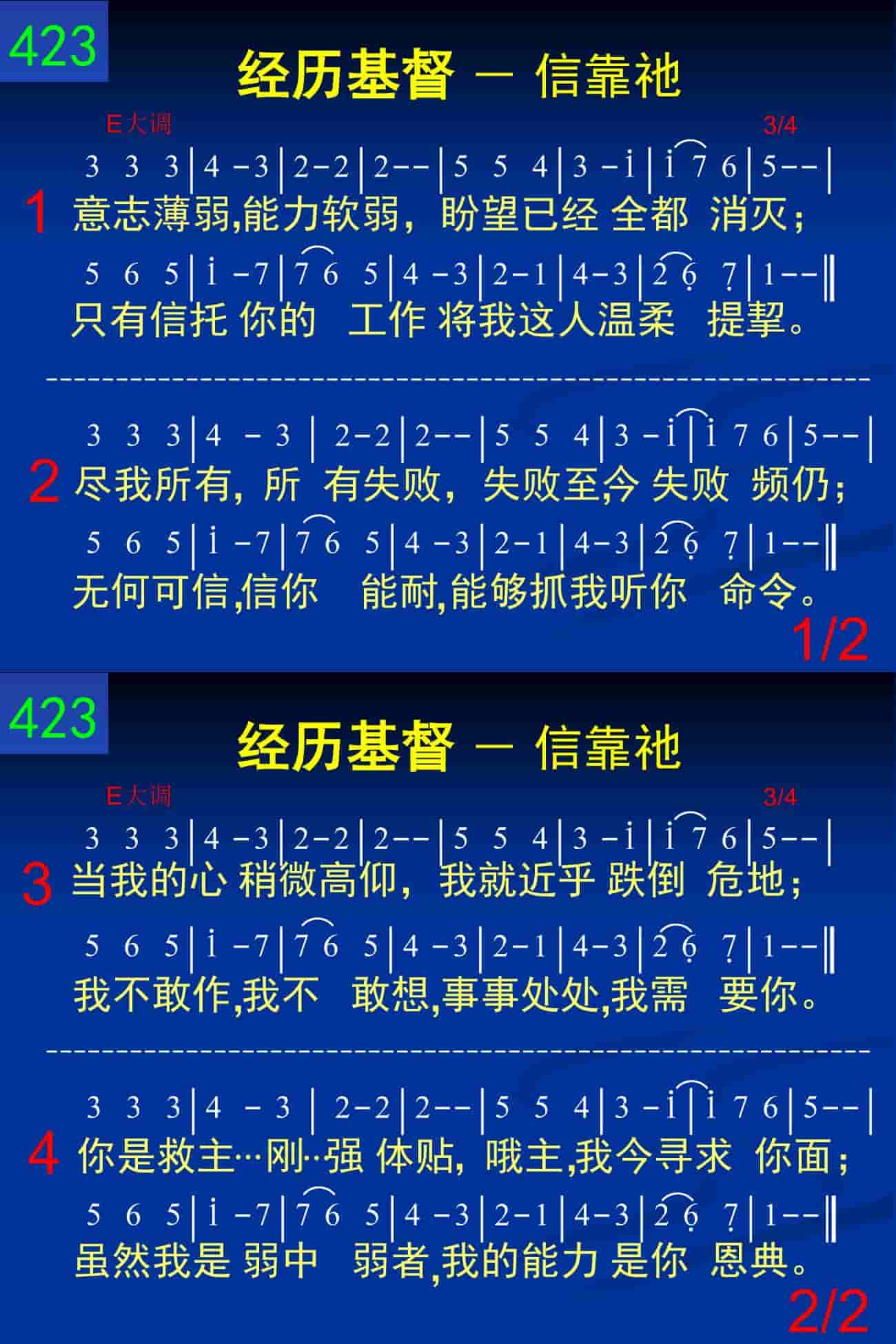 意志薄弱,能力软弱,盼望已经全都消灭;只有信托你的工作将我这人温柔提挈。