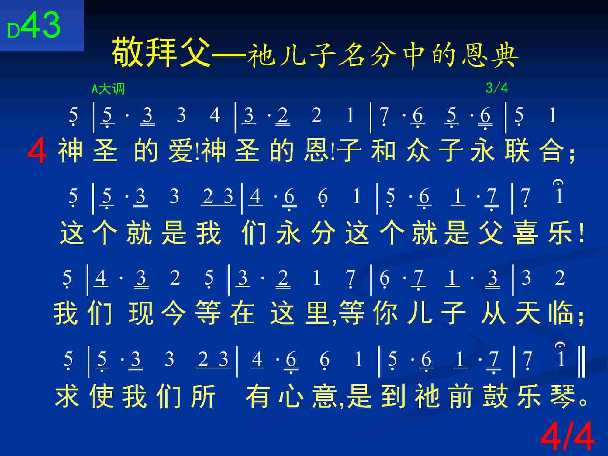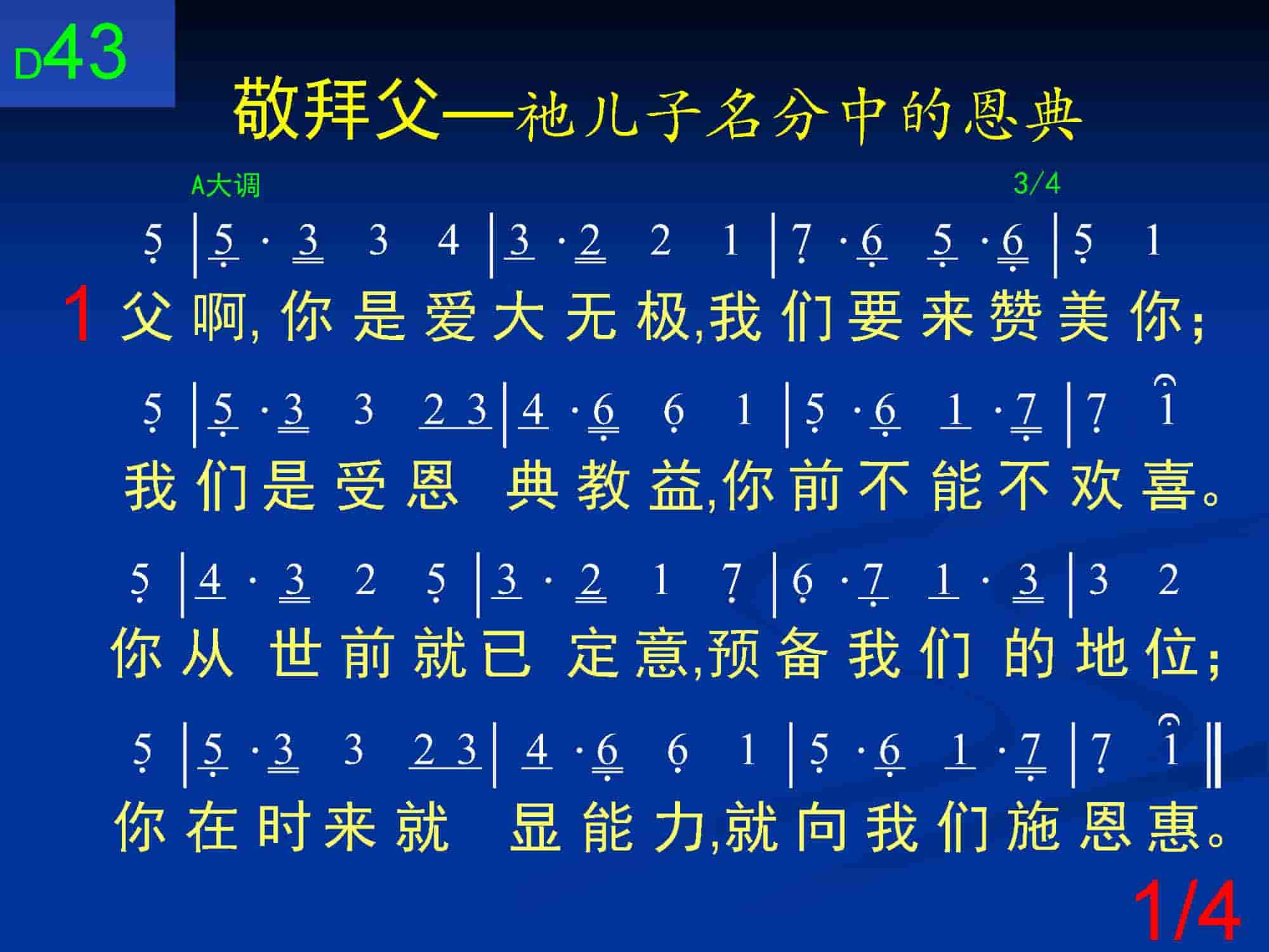 父啊,你是爱大无极,我们要来赞美你;我们是受恩典教益,你前不能不欢喜。你从世前就已定意,预备我们的地位;你在时来就显能力,就向我们施恩惠。