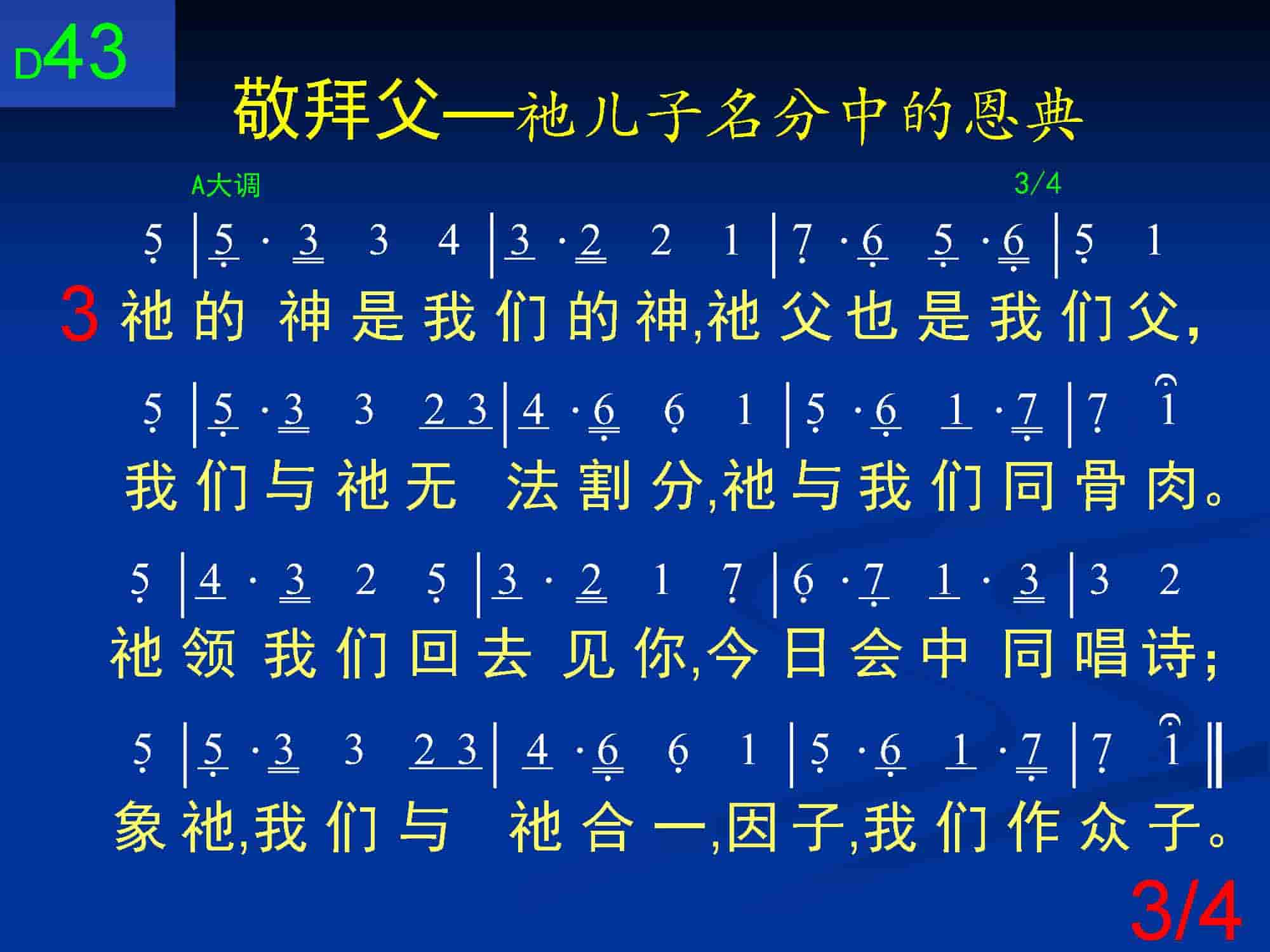 祂的神是我们的神,祂父也是我们父,我们与祂无法割分,祂与我们同骨肉。祂领我们回去见你,今日会中同唱诗;像祂,我们与祂合一,因子,我们作众子。