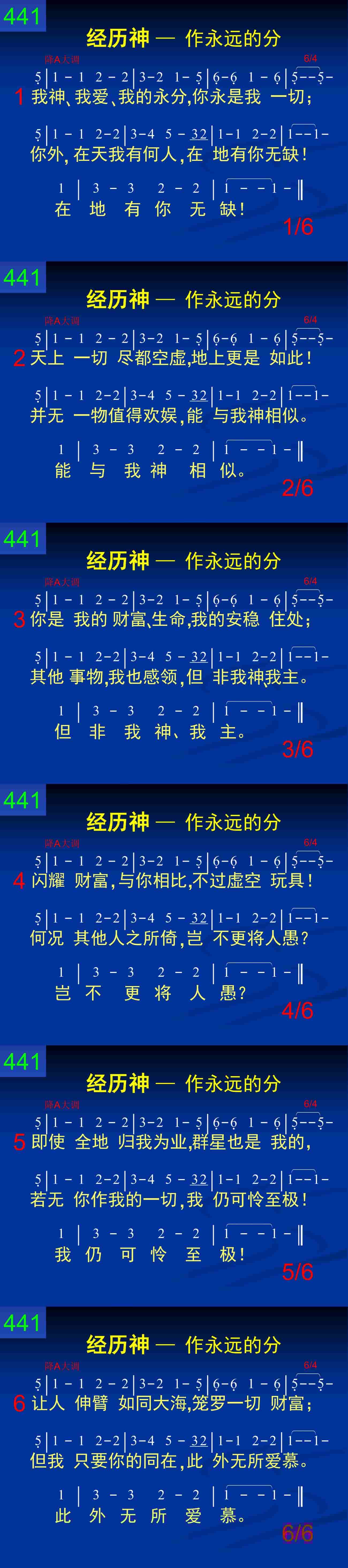 我神、我爱、我的永分,你永是我一切;你外,在天我有何人,在地有你无缺!在地有你无缺!