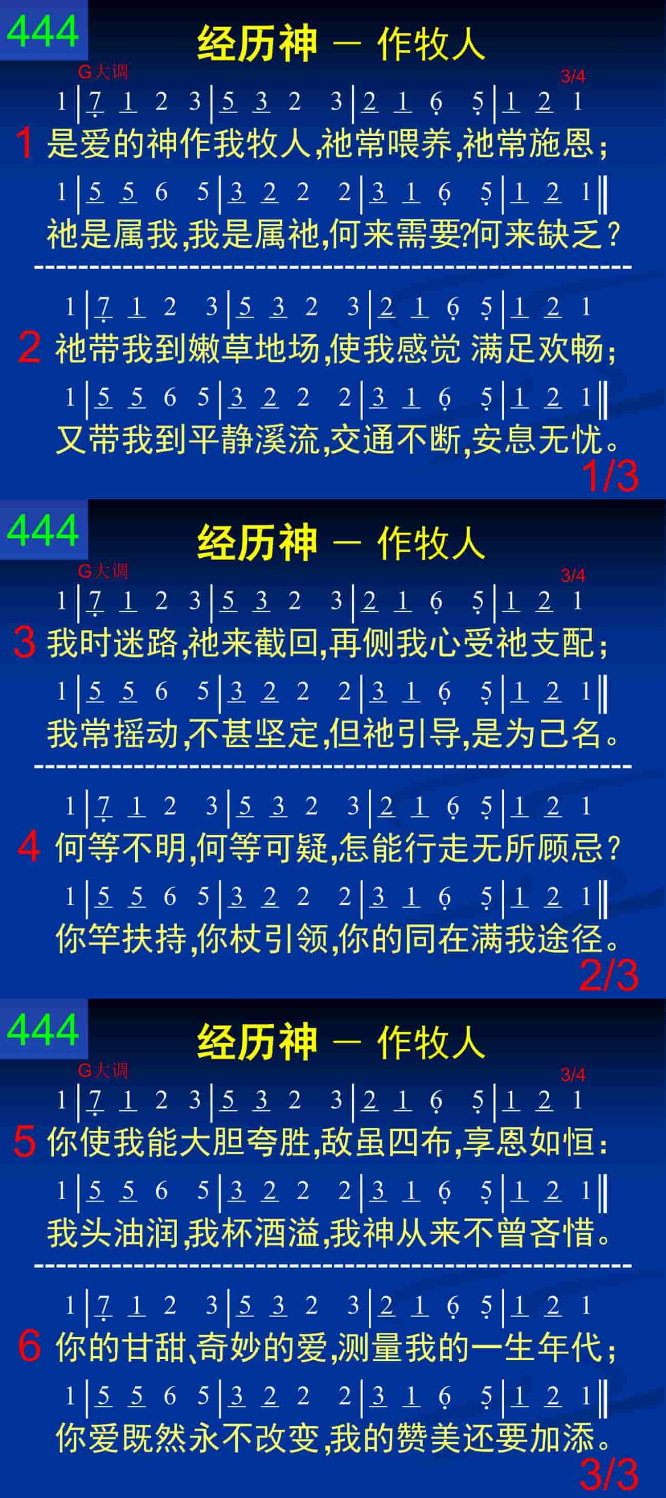 是爱的神作我牧人,祂常喂养,祂常施恩;祂是属我,我是属祂,何来需要?何来缺乏?