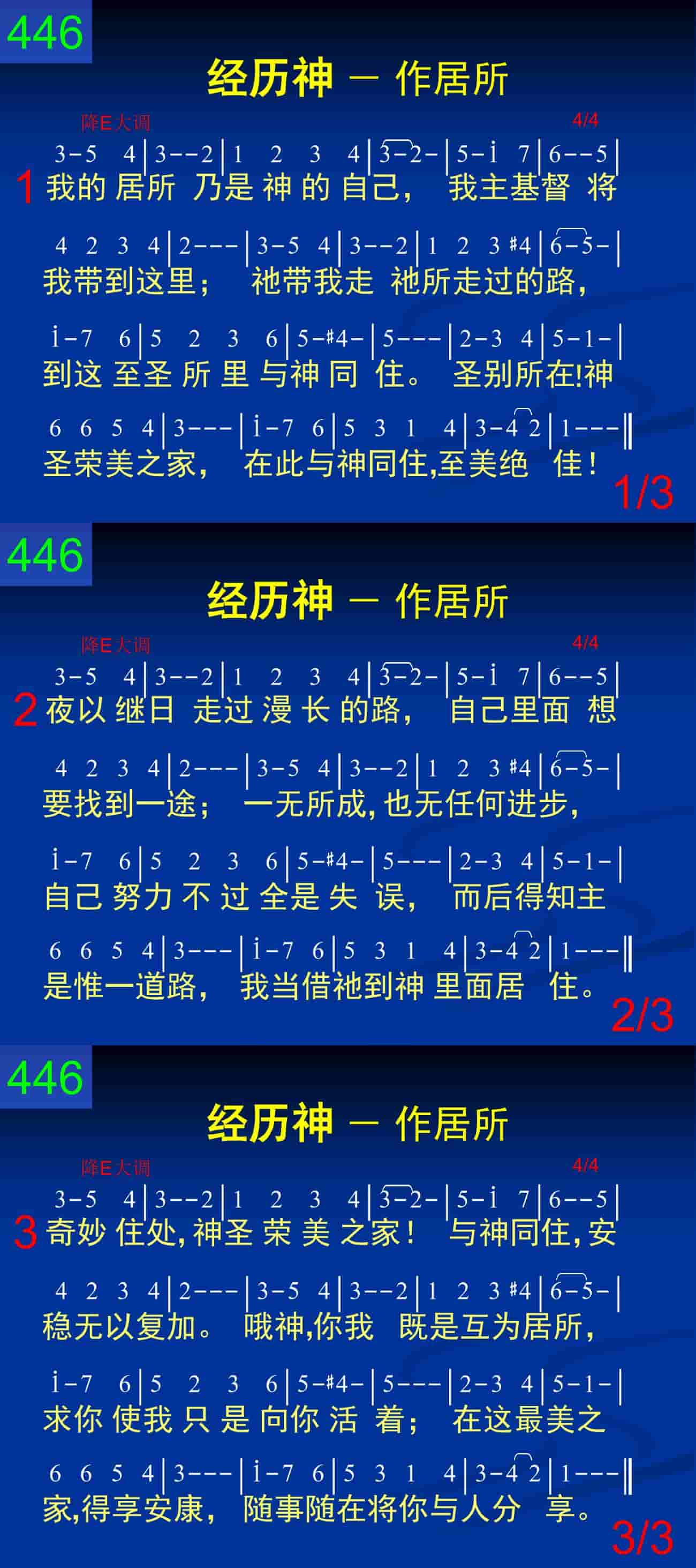 我的居所乃是神的自己,我主基督将我带到这里;祂带我走祂所走过的路,到这至圣所里与神同住。圣别所在!神圣荣美之家,在此与神同住,至美绝佳!