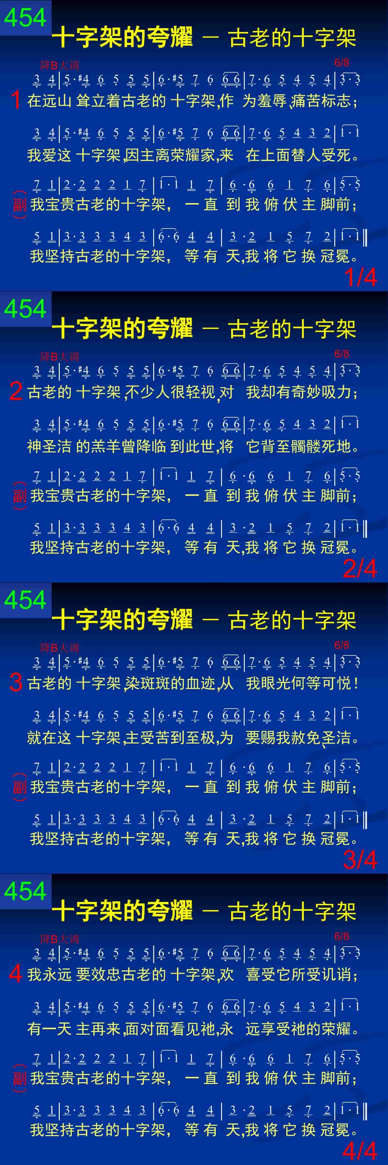 我宝贵古老的十字架,一直到我俯伏主脚前;我坚持古老的十字架,等有天,我将它换冠冕。