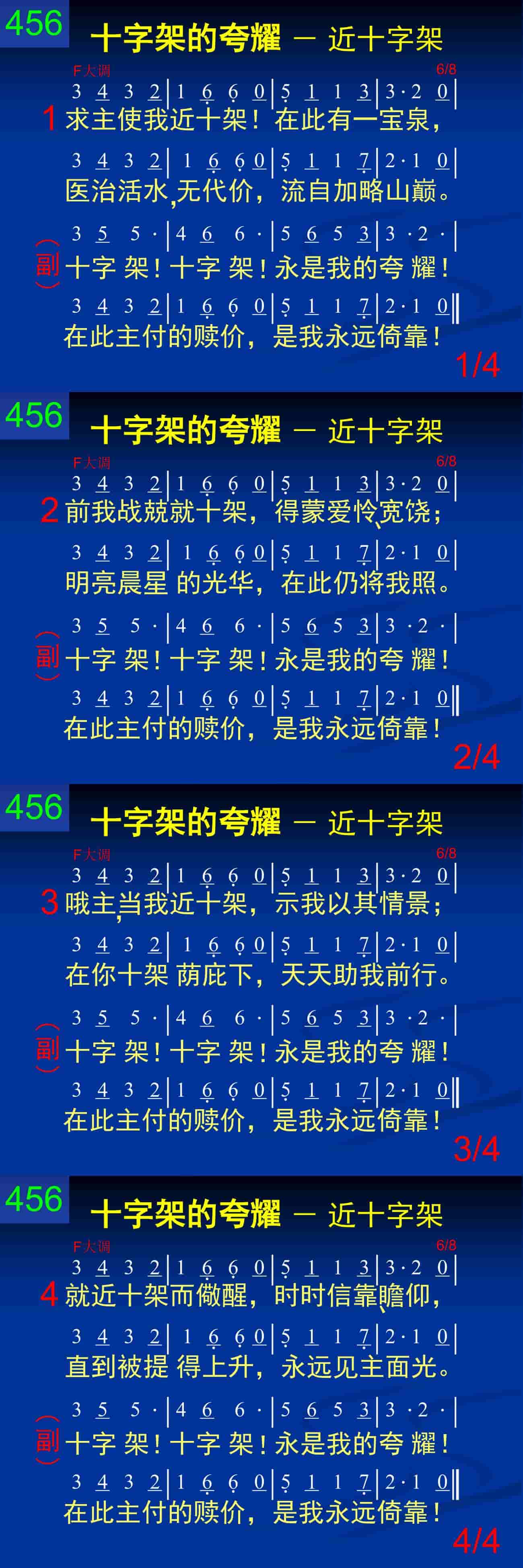 十字架!十字架!永是我的夸耀!在此主付的赎价,是我永远倚靠!