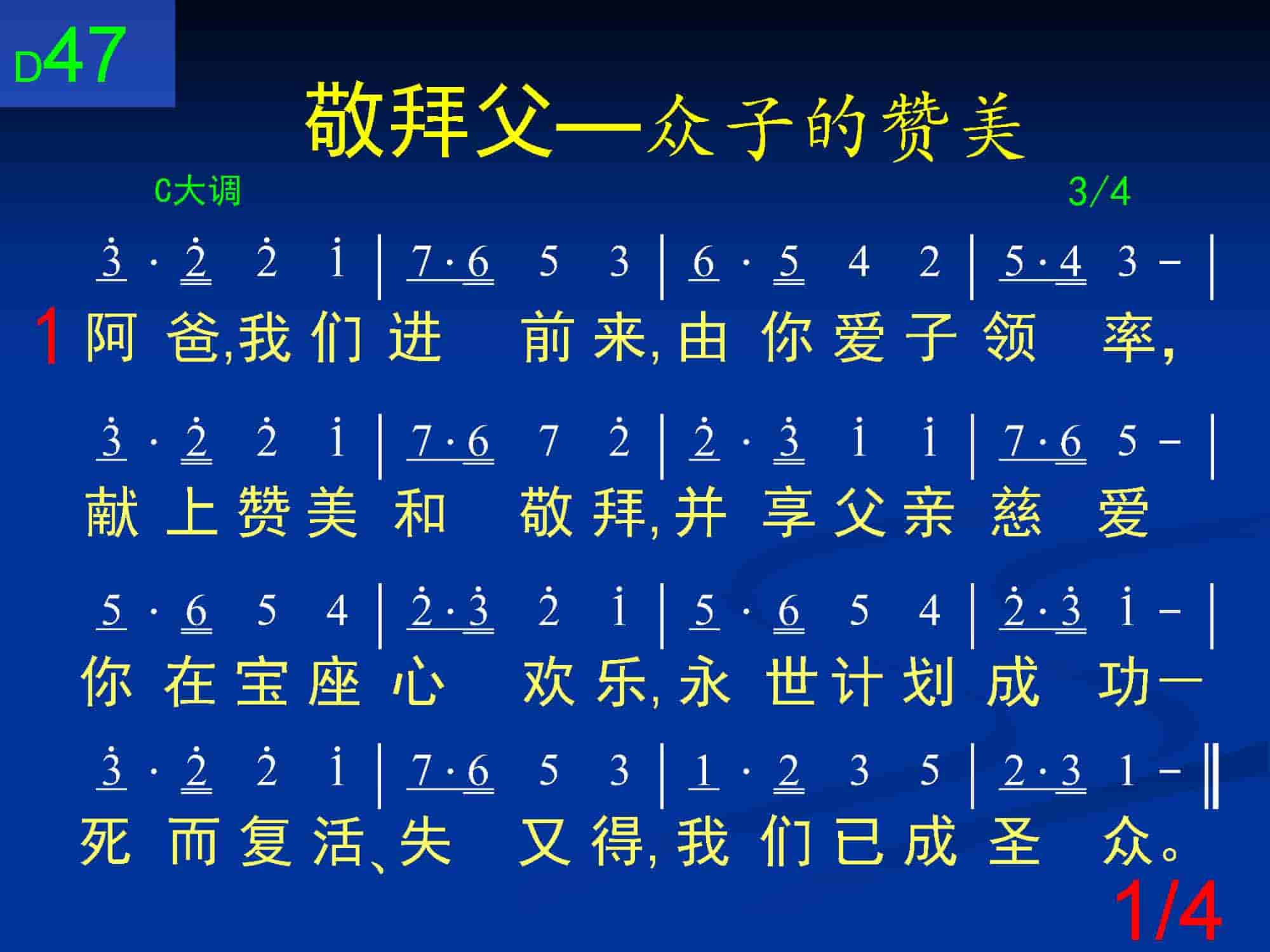 阿爸,我们进前来,由你爱子领率,献上赞美和敬拜,并享父亲慈爱。你在宝座心欢乐,永世计划成功——死而复活、失又得,我们已成圣众。