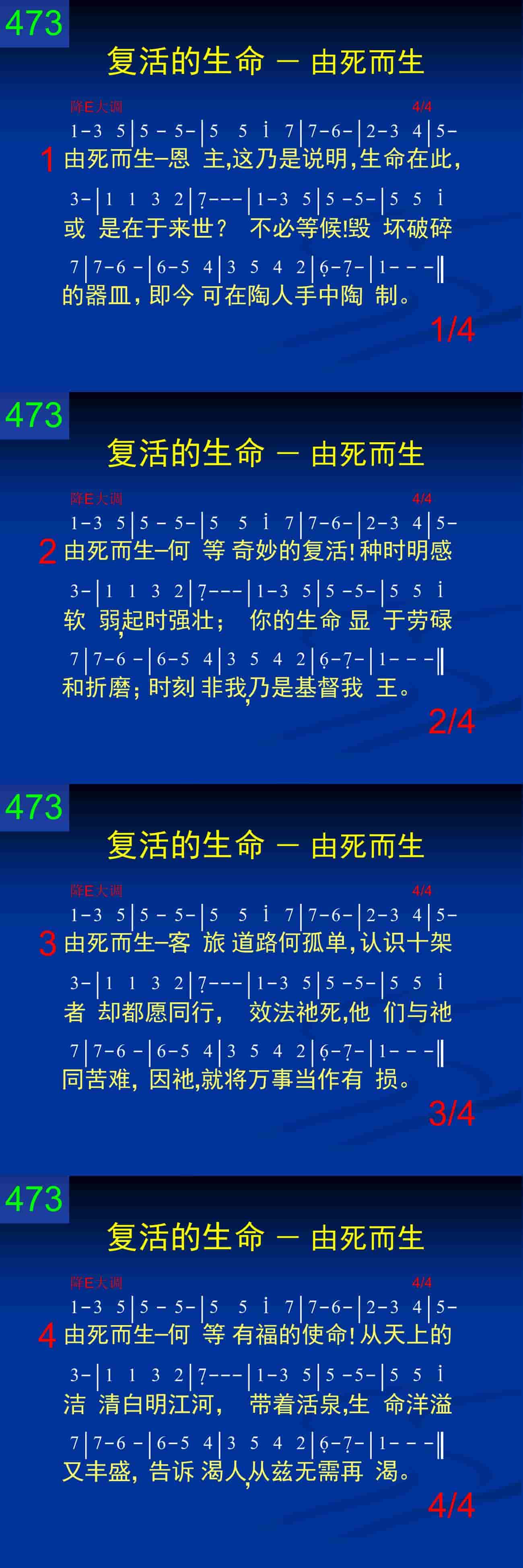由死而生——何等奇妙的复活!种时明感软弱,起时强壮;你的生命显于劳碌和折磨;时刻非我,乃是基督我王。