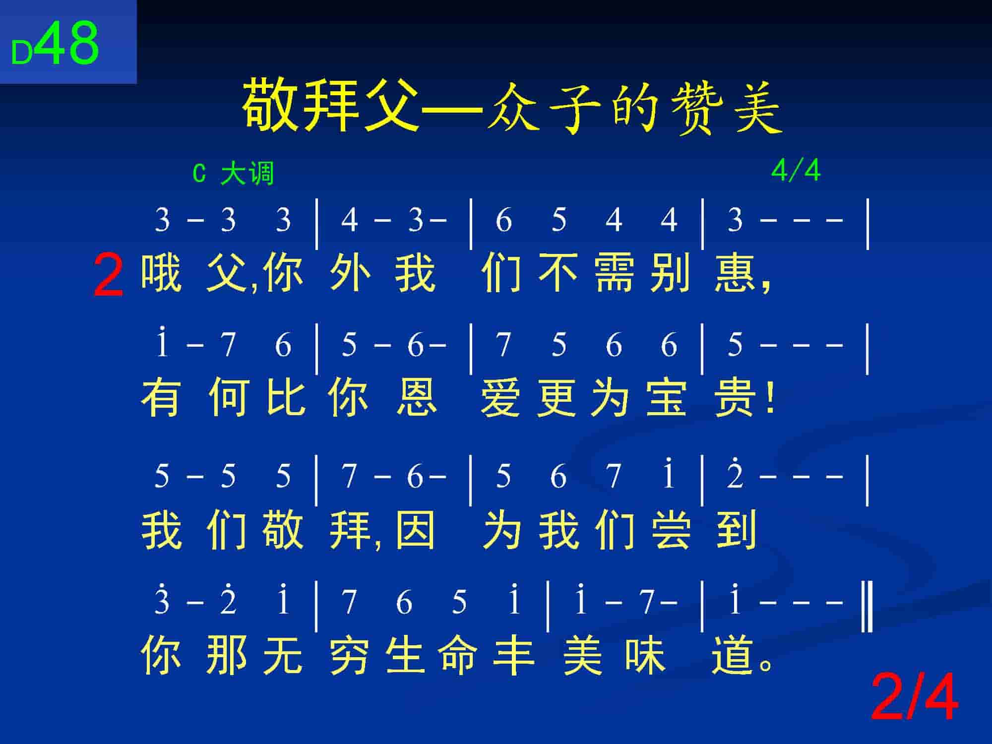 哦父,你外我们不需别惠,有何比你恩爱更为宝贵!我们敬拜,因为我们尝到你那无穷生命丰美味道。