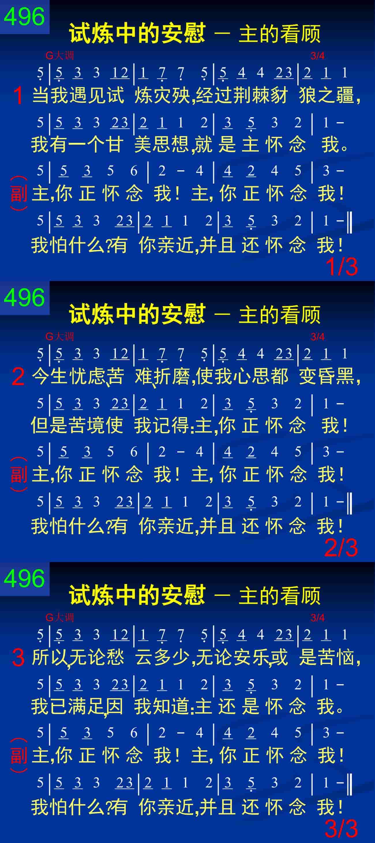 主,你正怀念我!主,你正怀念我!我怕什么?有你亲近,并且还怀念我!