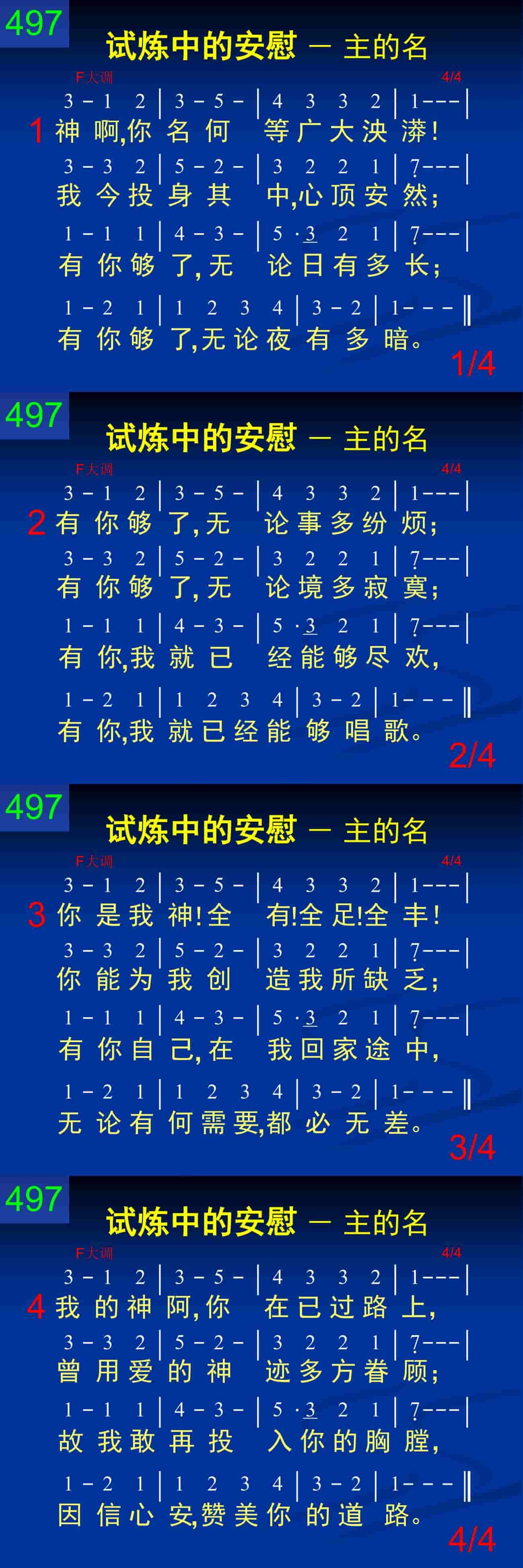 我的神啊,你在已过路上,曾用爱的神迹多方眷顾;故我敢再投入你的胸膛,因信心安,赞美你的道路。