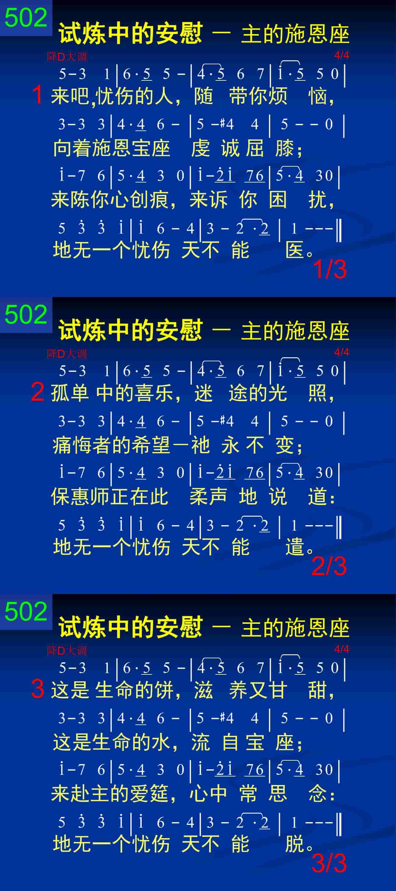 来罢,忧伤的人,随带你烦恼,向着施恩宝座虔诚屈膝;来陈你心创痕,来诉你困扰,地无一个忧伤天不能医。