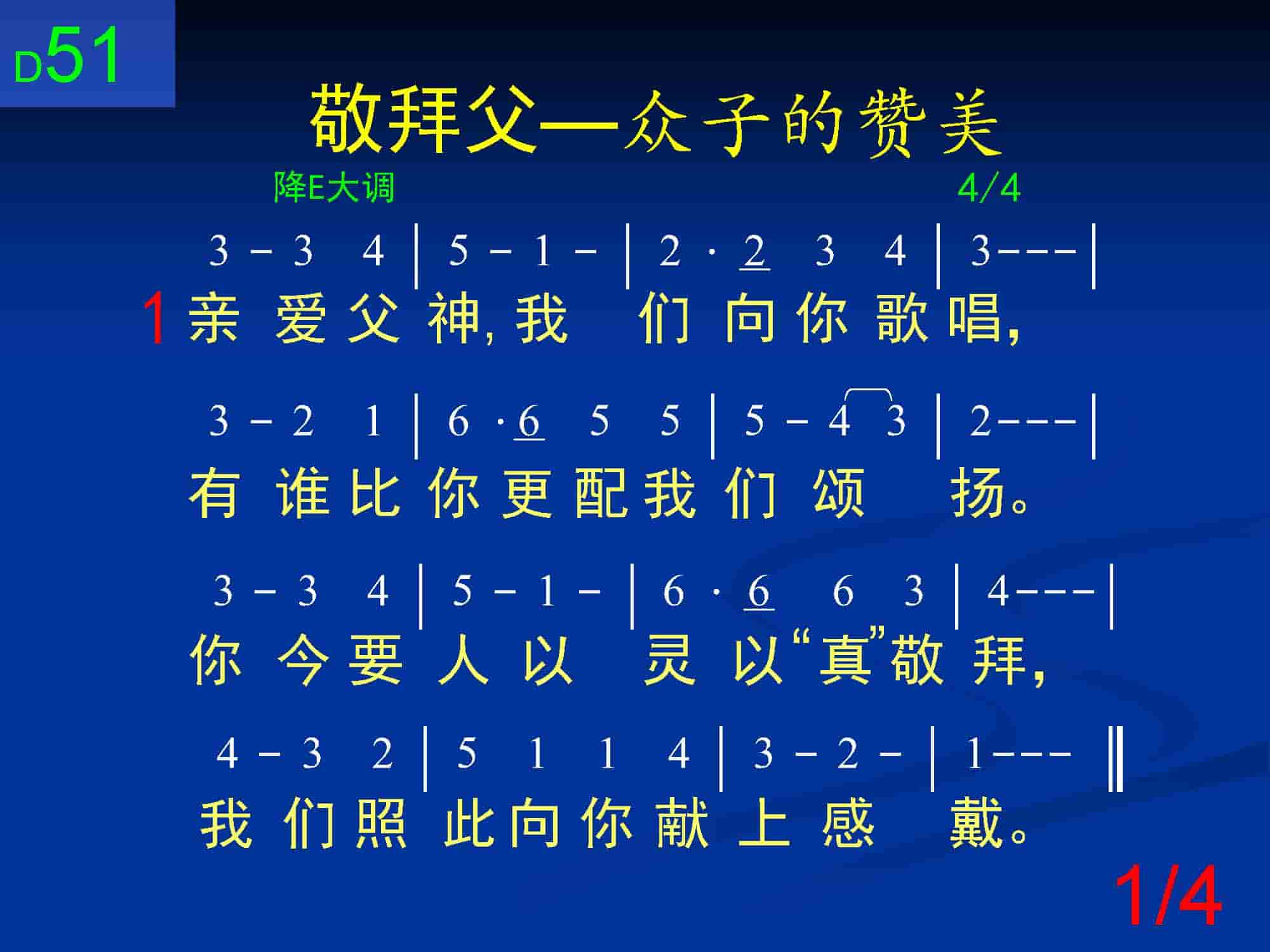 亲爱父神,我们向你歌唱,有谁比你更配我们颂扬。你今要人以灵以“真”敬拜,我们照此向你献上感戴。