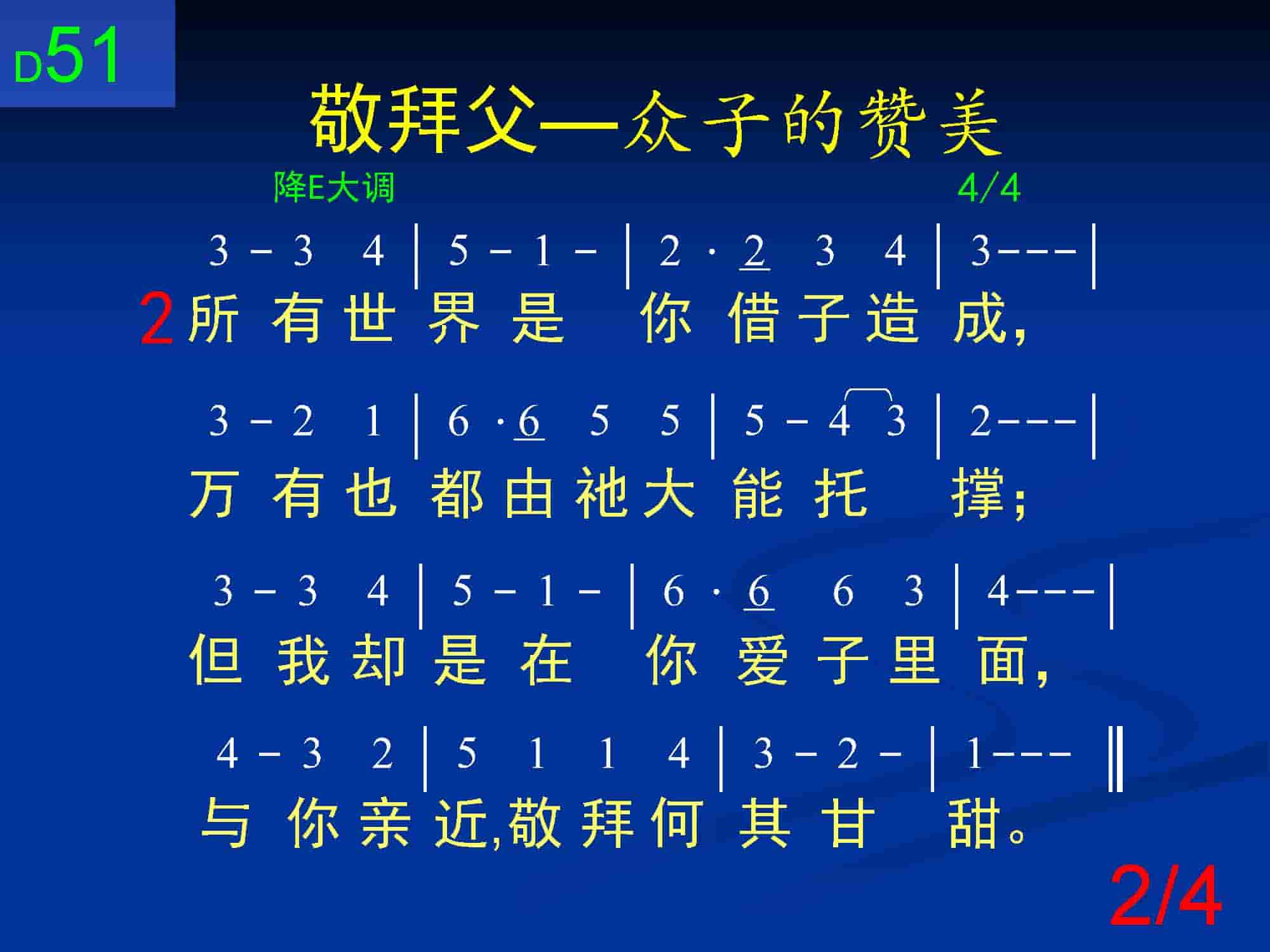 所有世界是你借子造成,万有也都由祂大能托撑;但我却是在你爱子里面,与你亲近,敬拜何其甘甜。