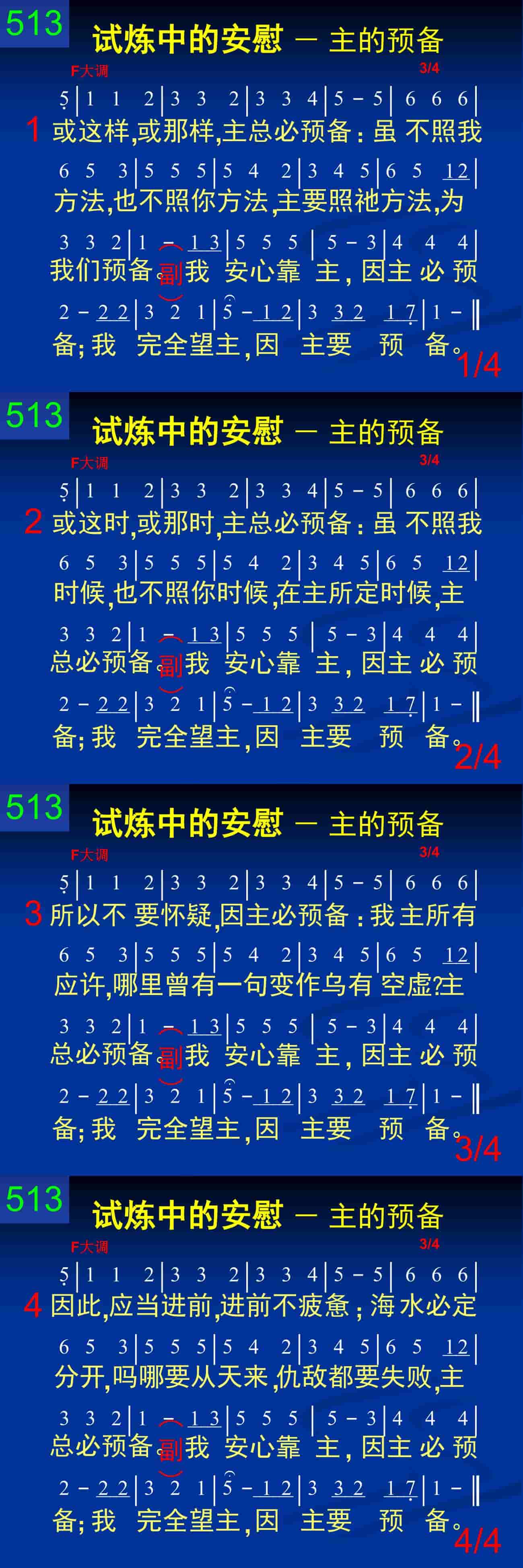 或这时,或那时,主总必预备:虽不照我时候,也不照你时候,在主所定时候,主总必预备。