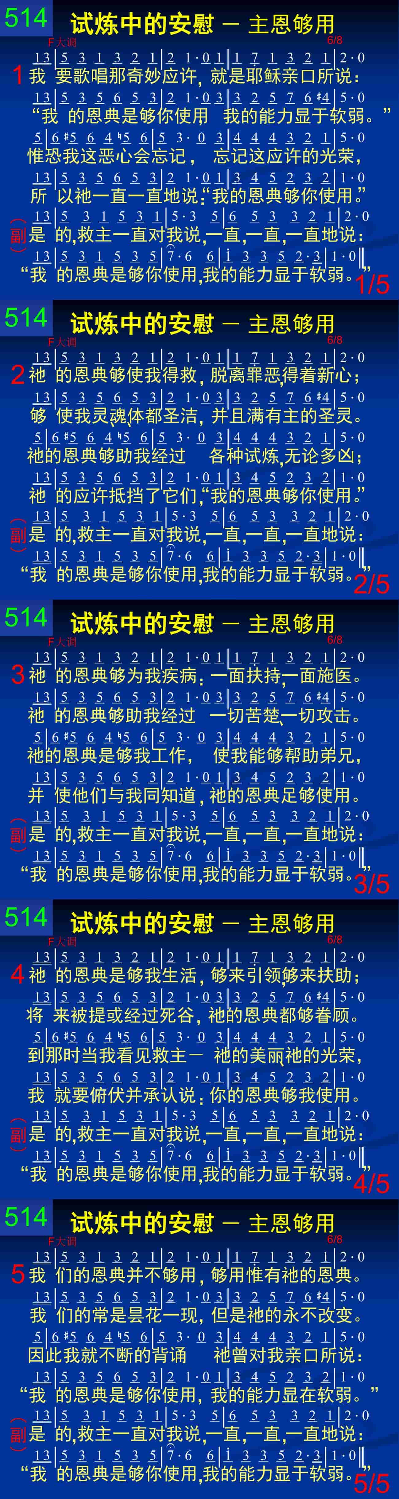 我要歌唱那奇妙应许,就是耶稣亲口所说:“我的恩典是够你使用,我的能力显于软弱。”唯恐我这恶心会忘记,忘记这应许的光荣,所以祂一直一直的说:“我的恩典够你使用。”