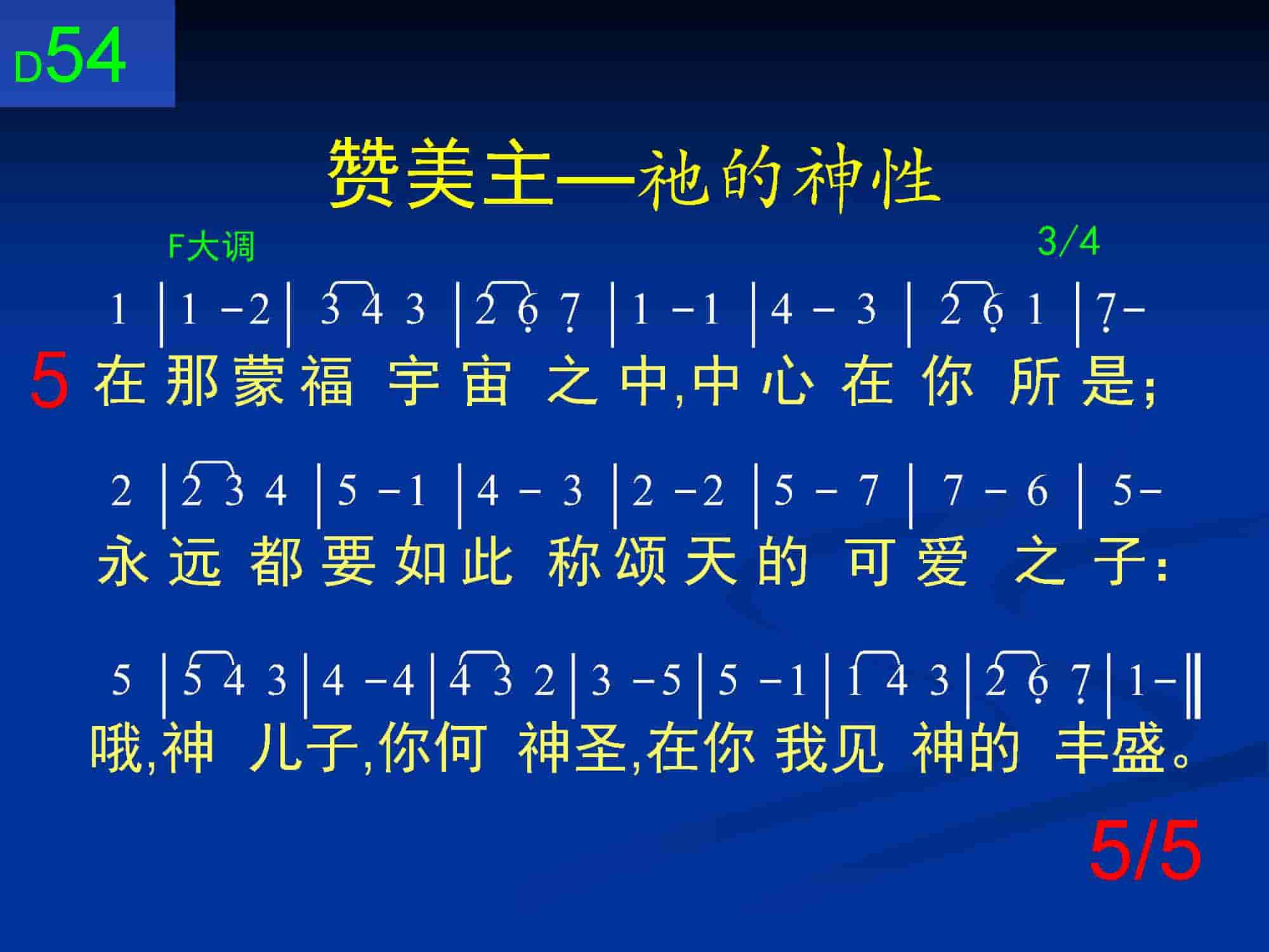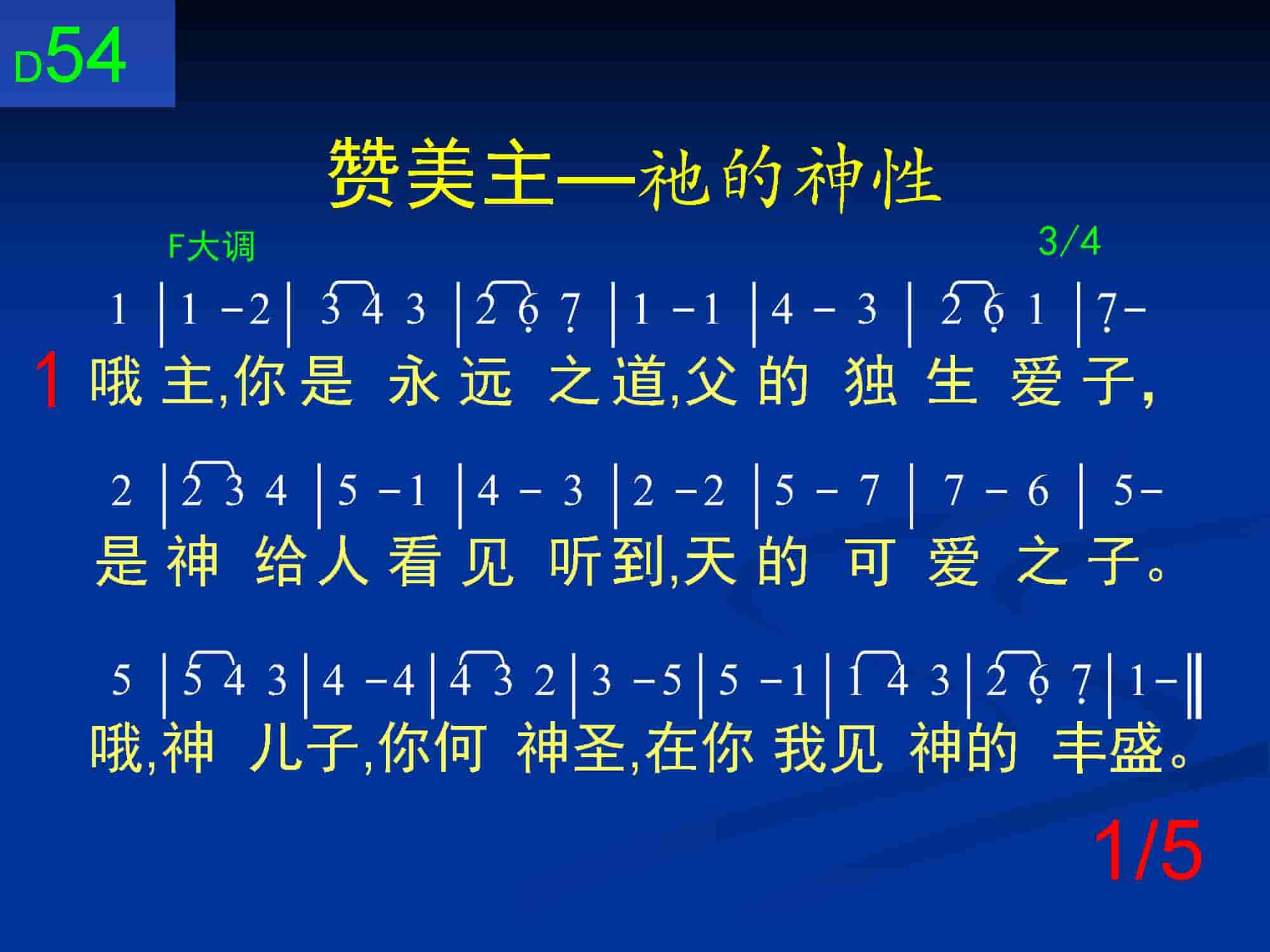 哦主,你是永远之道,父的独生爱子,是神给人看见听到,天的可爱之子。哦,神儿子,你何神圣,在你我见神的丰盛。