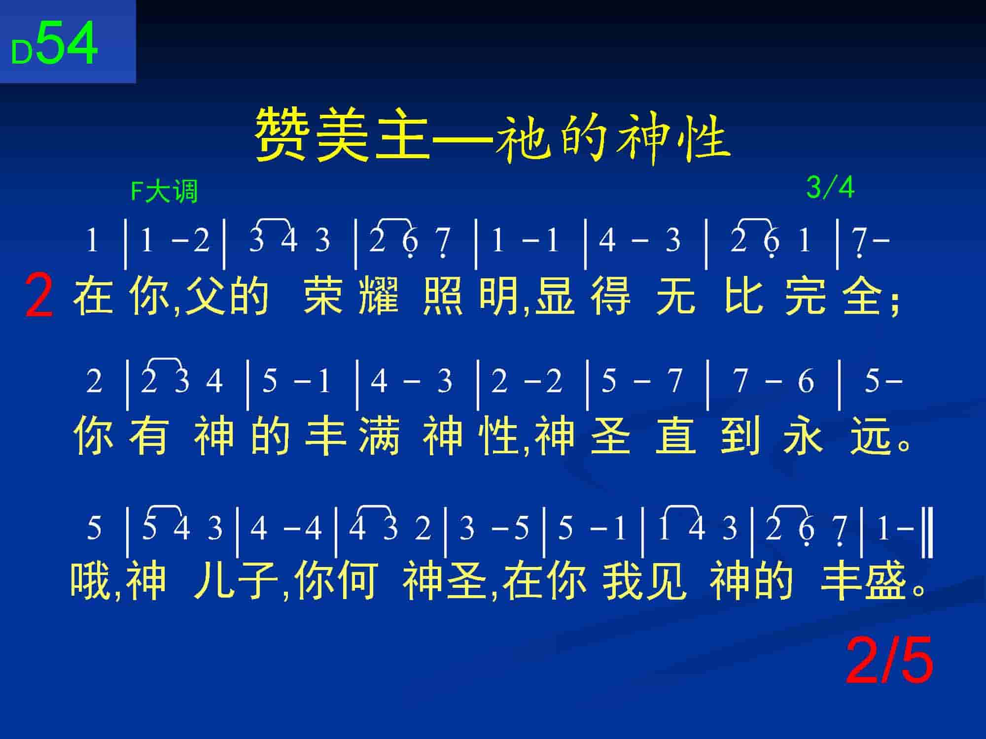 在你,父的荣耀照明,显得无比完全;你有神的丰满神性,神圣直到永远。哦,神儿子,你何神圣,在你我见神的丰盛。