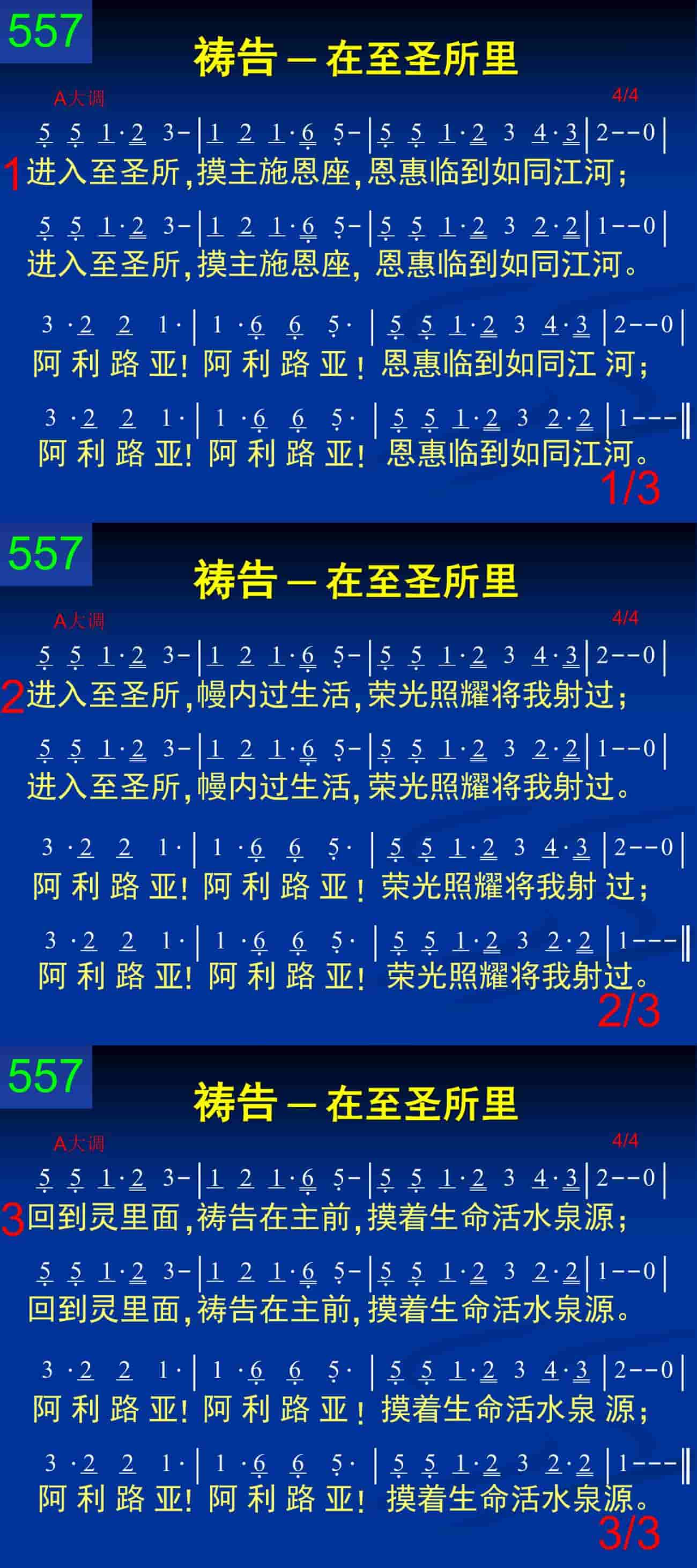 进入至圣所,幔内过生活,荣光照耀将我射过;进入至圣所,幔内过生活,荣光照耀将我射过。阿利路亚!阿利路亚!荣光照耀将我射过;阿利路亚!阿利路亚!荣光照耀将我射过。