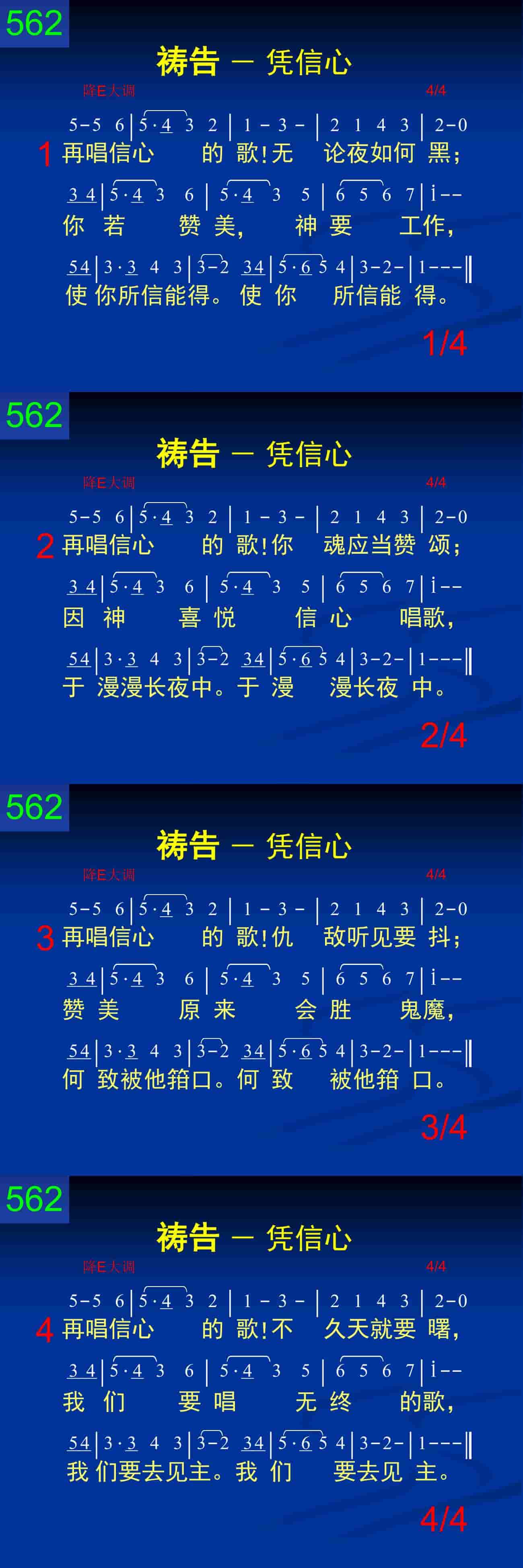 再唱信心的歌!你魂应当赞颂;因神喜悦信心唱歌,于漫漫长夜中。
