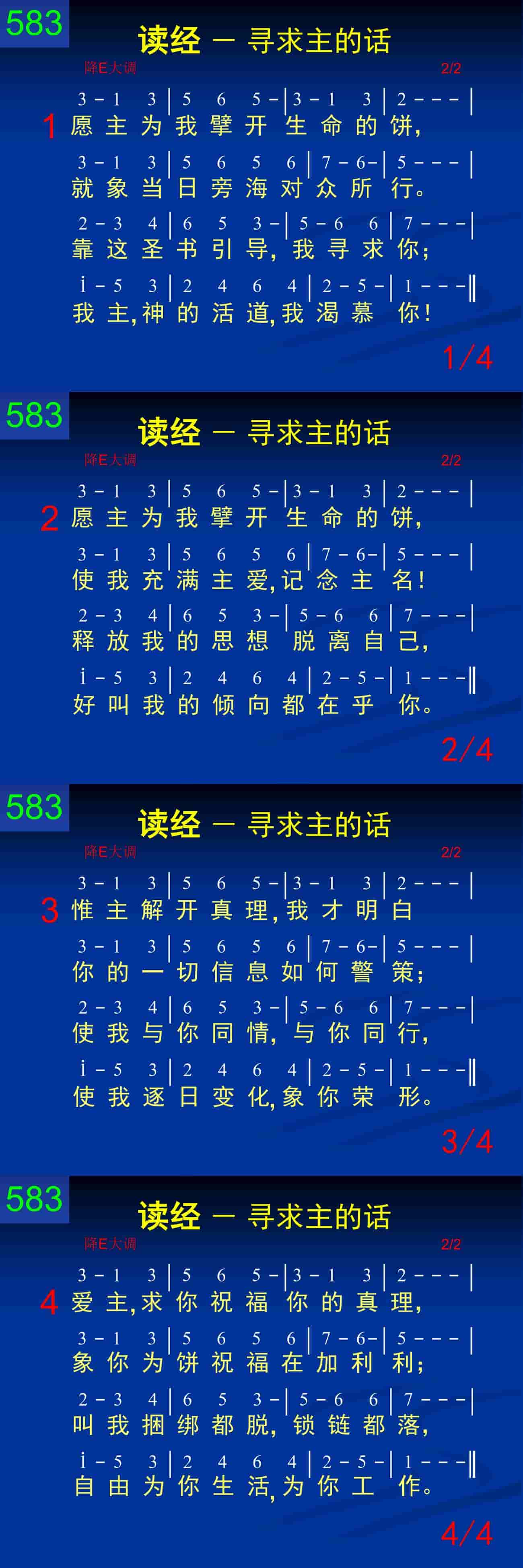 愿主为我擘开生命的饼,就像当日旁海对众所行。靠这圣书引导,我寻求你;我主,神的活道,我渴慕你!