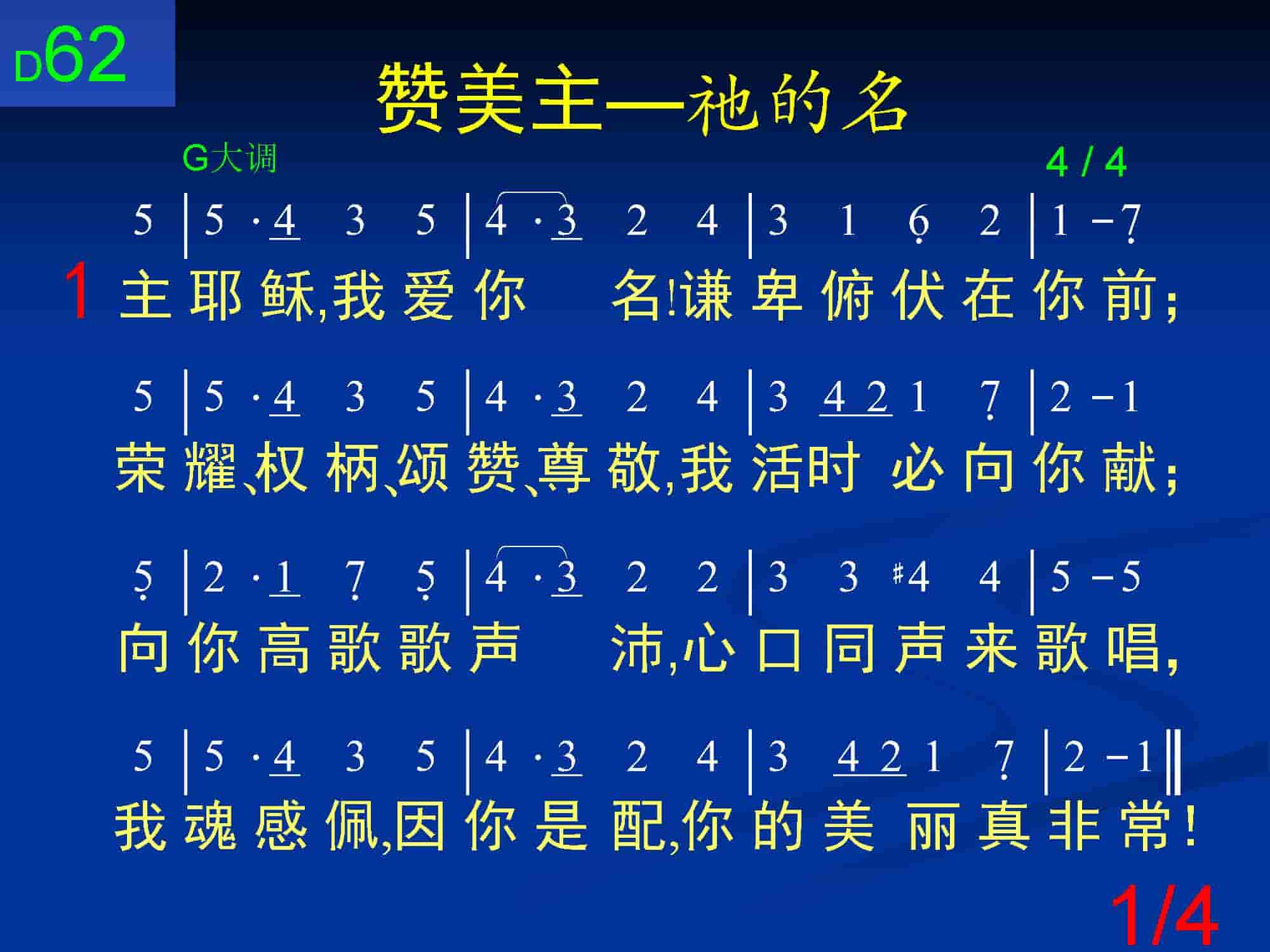 主耶稣,我爱你名!谦卑俯伏在你前;荣耀、权柄、颂赞、尊敬,我活时必向你献;向你高歌歌声沛,心口同声来歌唱,我魂感佩,因你是配,你的美丽真非常!