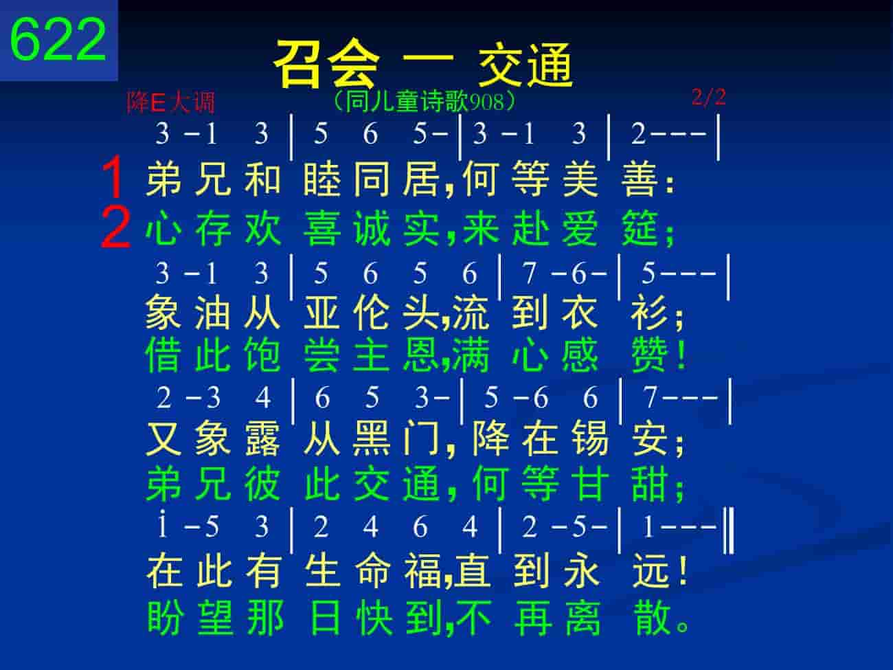 弟兄和睦同居,何等美善:像油从亚伦头,流到衣衫;又像露从黑门,降在锡安;在此有生命福,直到永远!