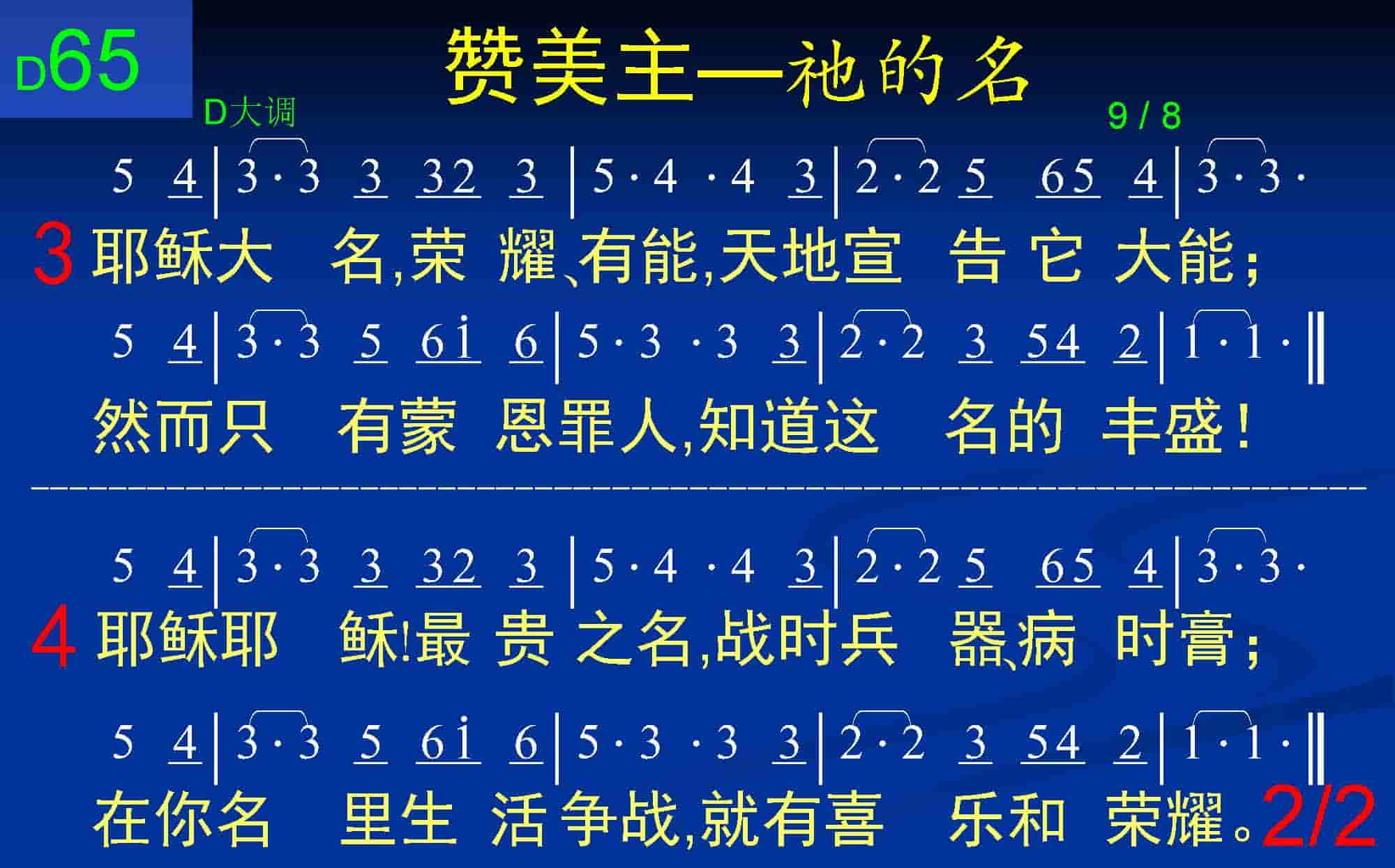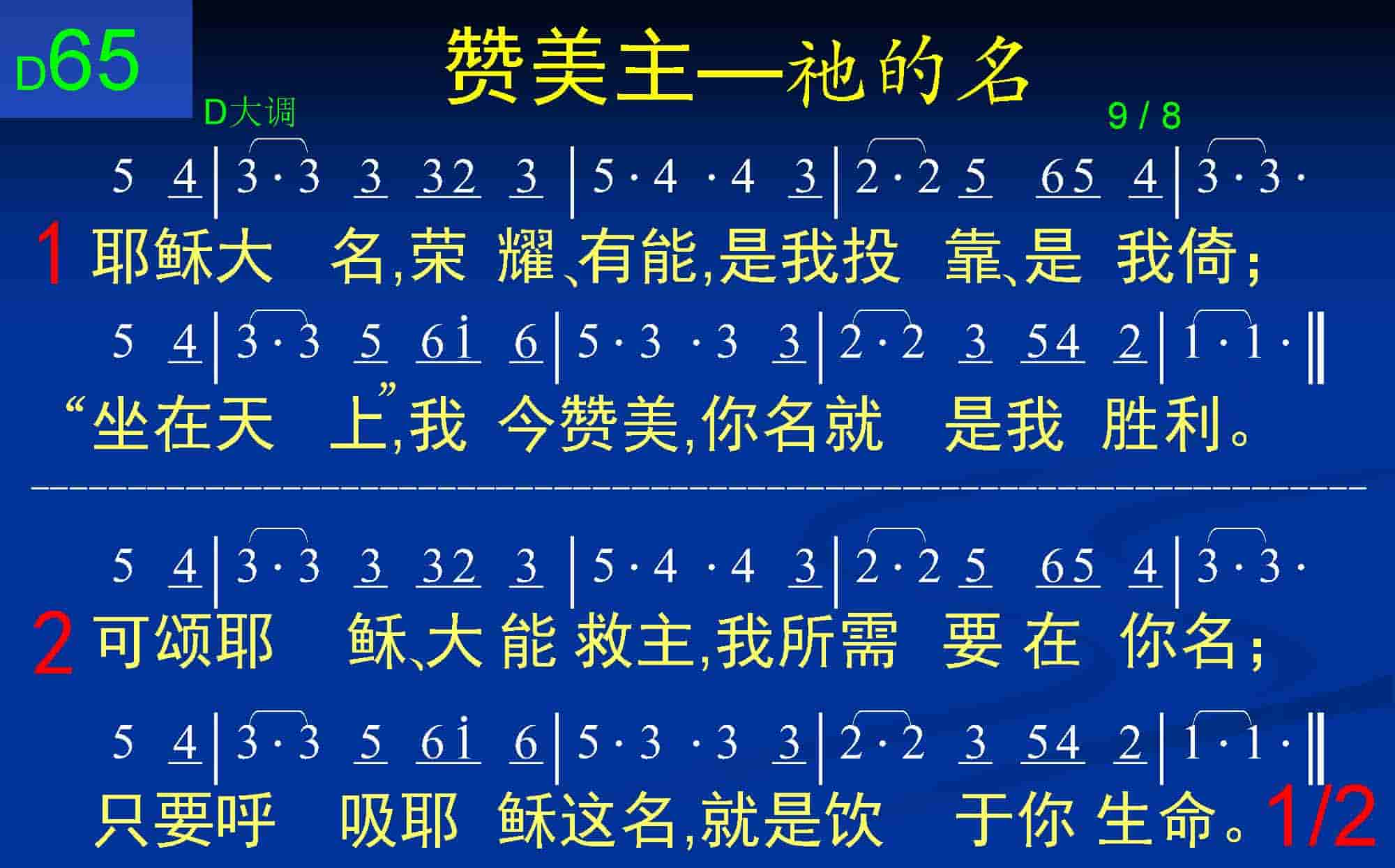 可颂耶稣、大能救主,我所需要在你名;只要呼吸耶稣这名,就是饮于你生命。