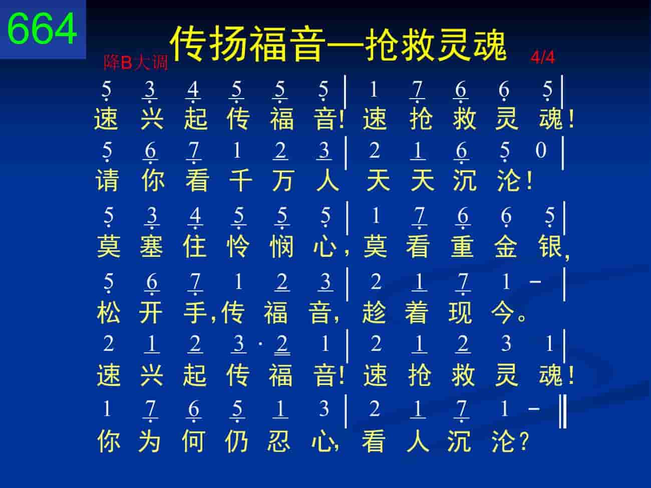 速兴起传福音!速抢救灵魂!请你看千万人天天沉沦!莫塞住怜悯心,莫看重金银,松开手,传福音,趁着现今。