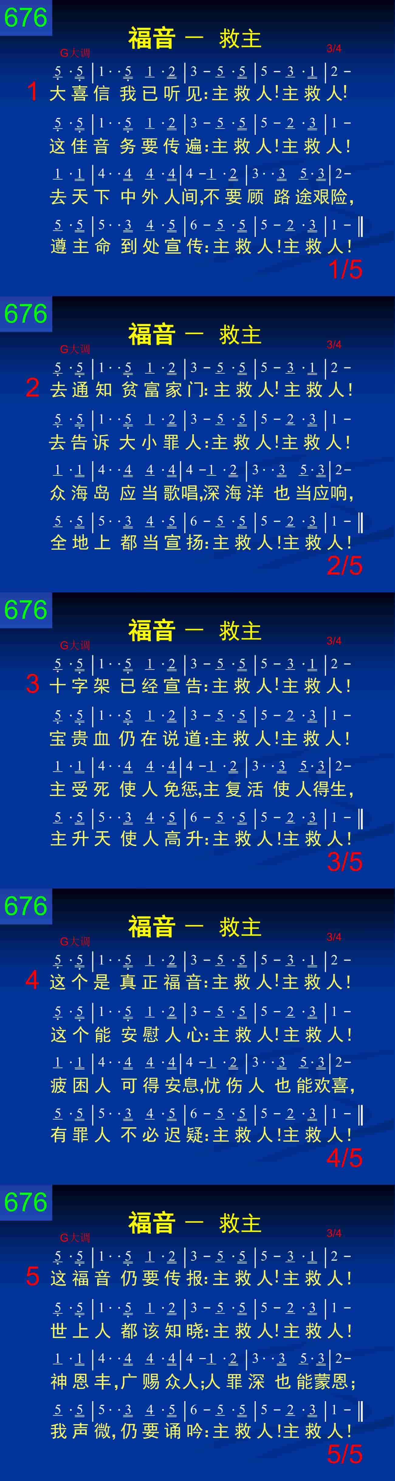 去通知贫富家门:主救人!主救人!去告诉大小罪人:主救人!主救人!众海岛应当歌唱,深海洋也当应响,全地上都当宣扬:主救人!主救人!