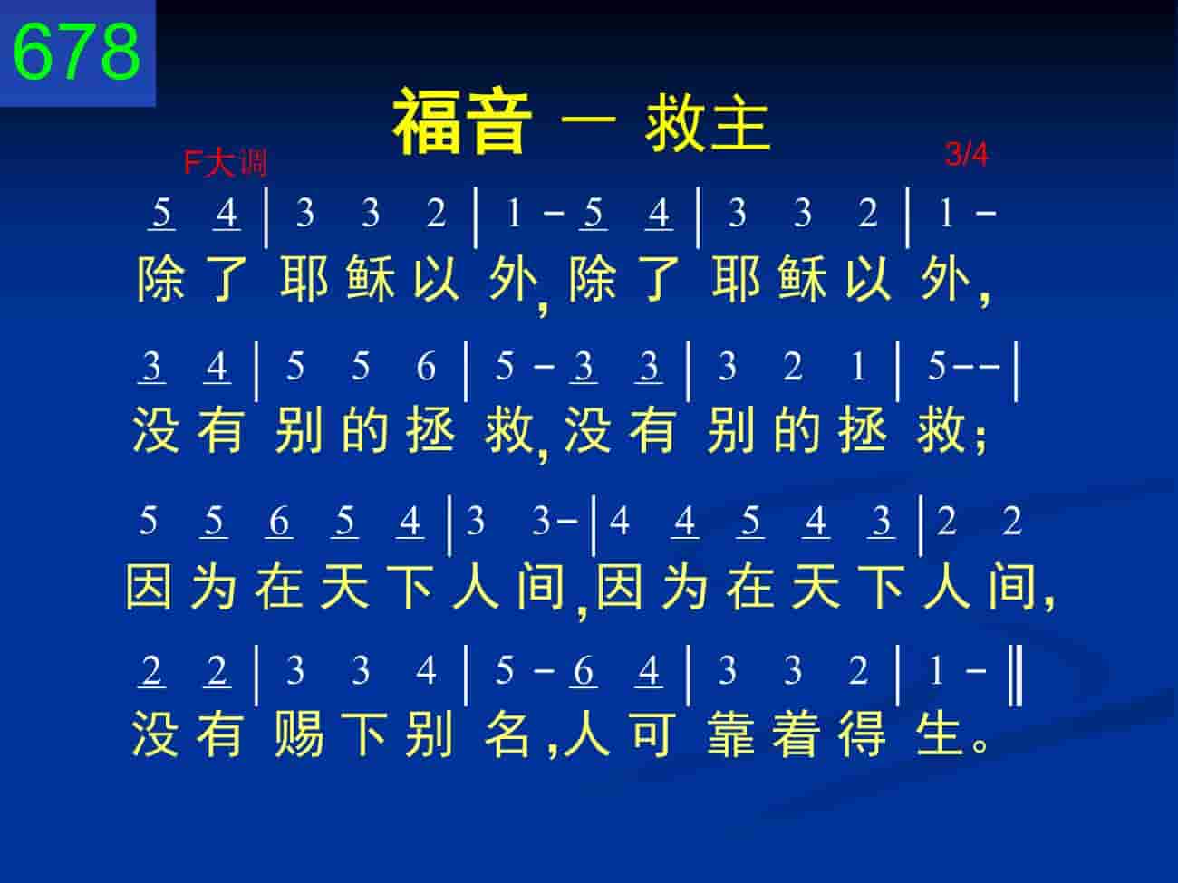 除了耶稣以外,除了耶稣以外,没有别的拯救,没有别的拯救;因为在天下人间,因为在天下人间,没有赐下别名,人可靠着得生。