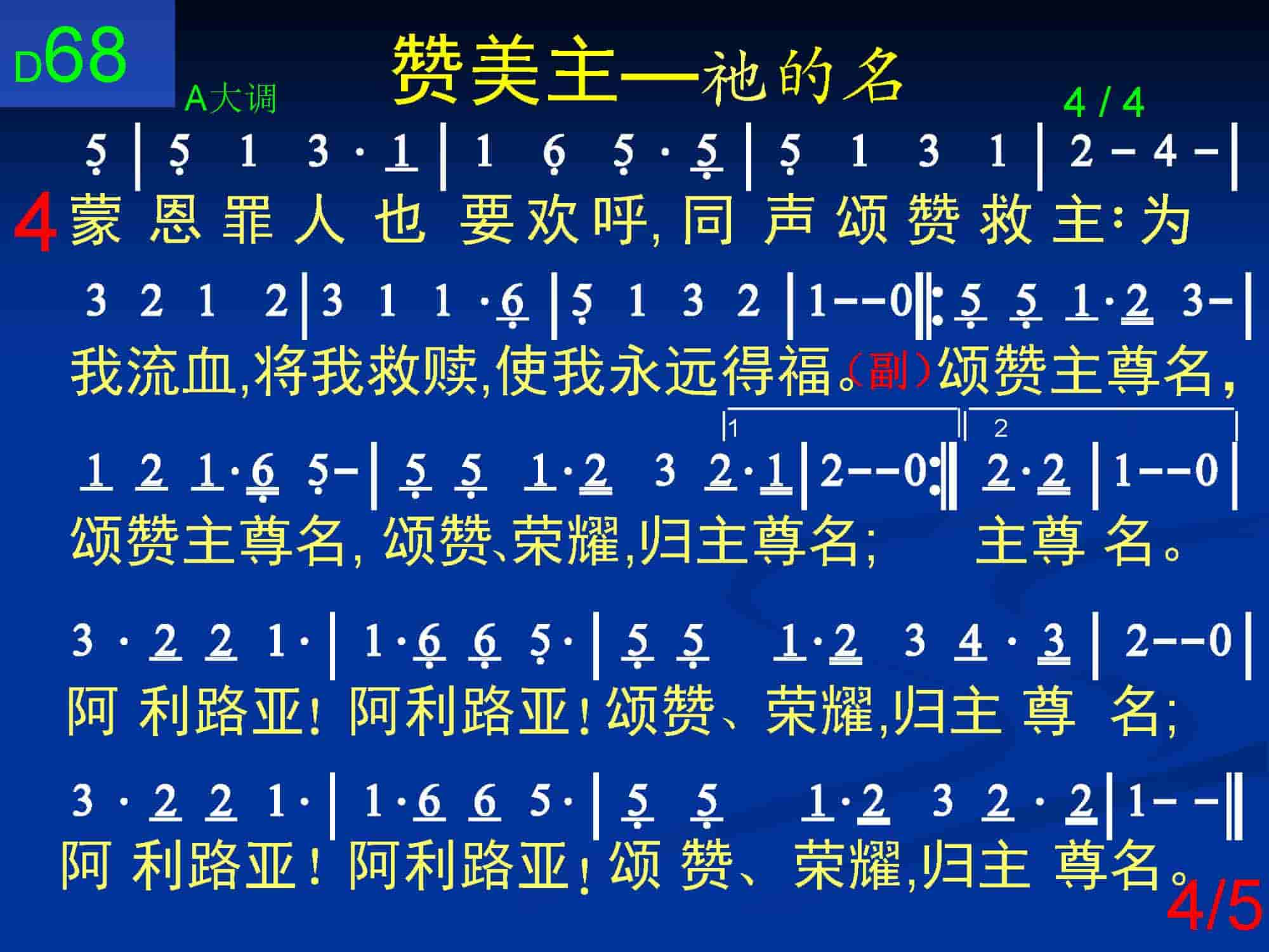 颂赞主尊名,颂赞主尊名,颂赞、荣耀,归主尊名。阿利路亚!阿利路亚!颂赞、荣耀,归主尊名。阿利路亚!阿利路亚!颂赞、荣耀,归主尊名。