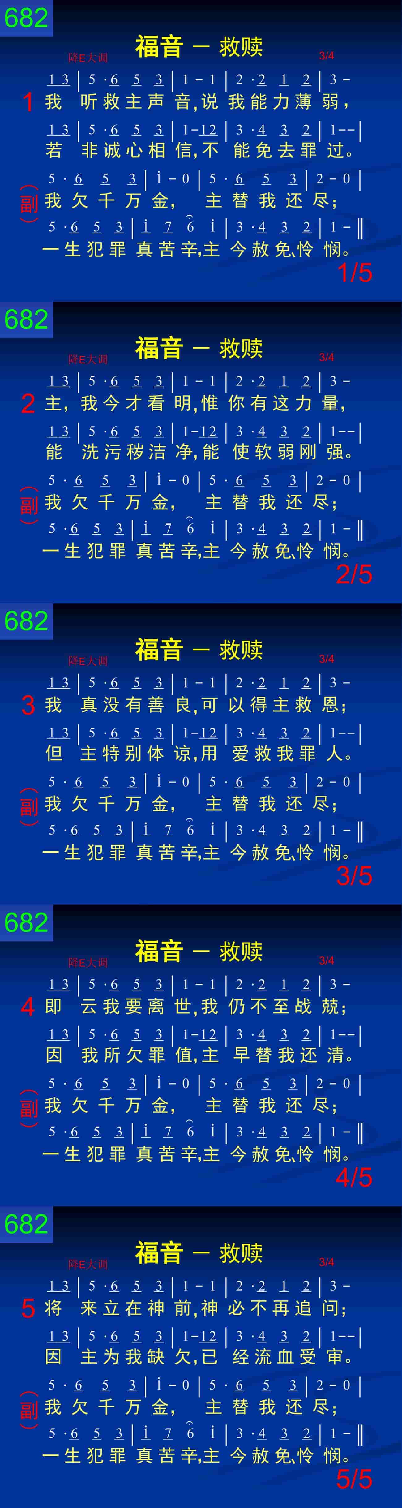 我欠千万金,主替我还尽;一生犯罪真苦辛,主今赦免、怜悯。