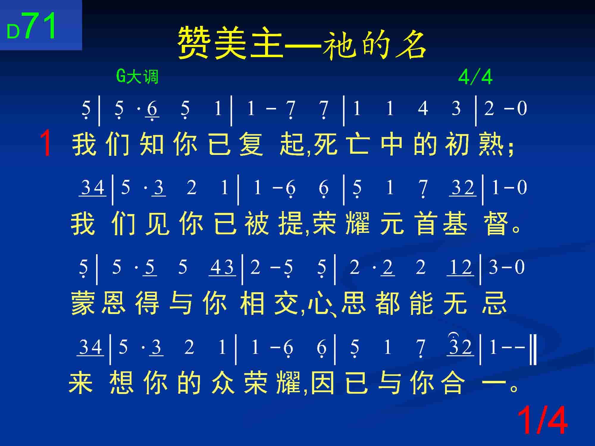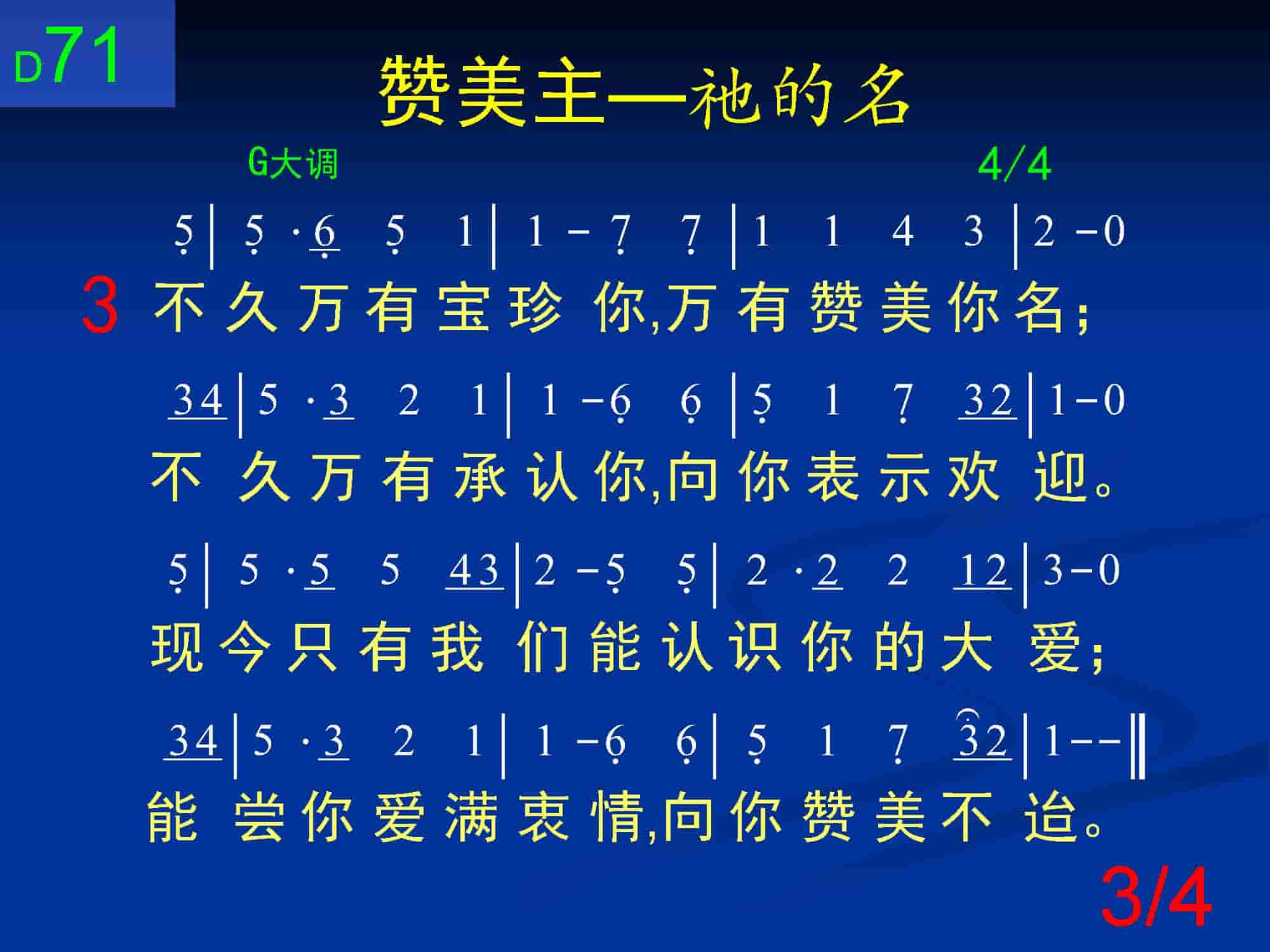 不久万有宝珍你,万有赞美你名;不久万有承认你,向你表示欢迎。现今只有我们能认识你的大爱;能尝你爱满衷情,向你赞美不迨。